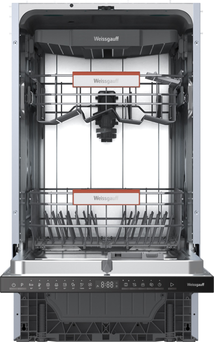Встраиваемая посудомоечная машина с проекцией времени на полу, авто-открыванием и инвертором Weissgauff