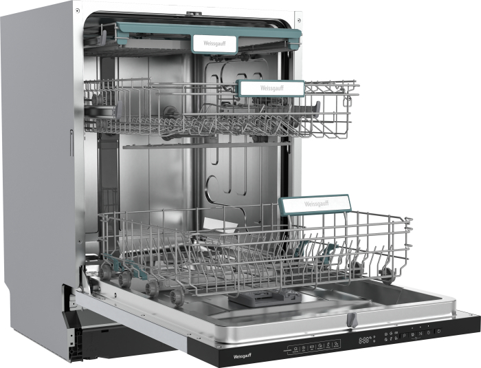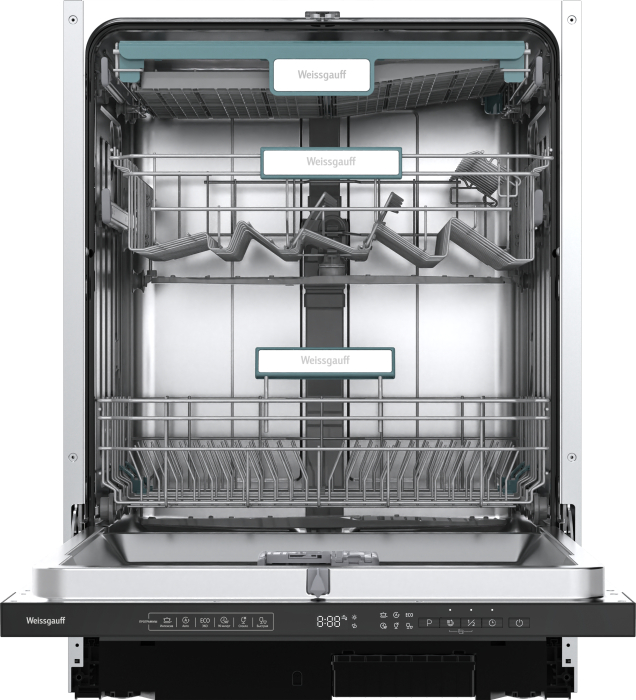 Встраиваемая посудомоечная машина с проекцией времени на полу, авто-открыванием и инвертором Weissgauff