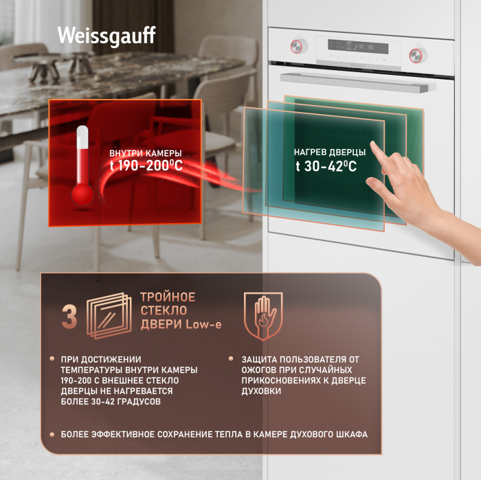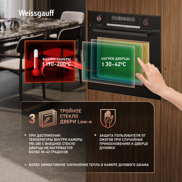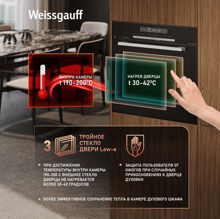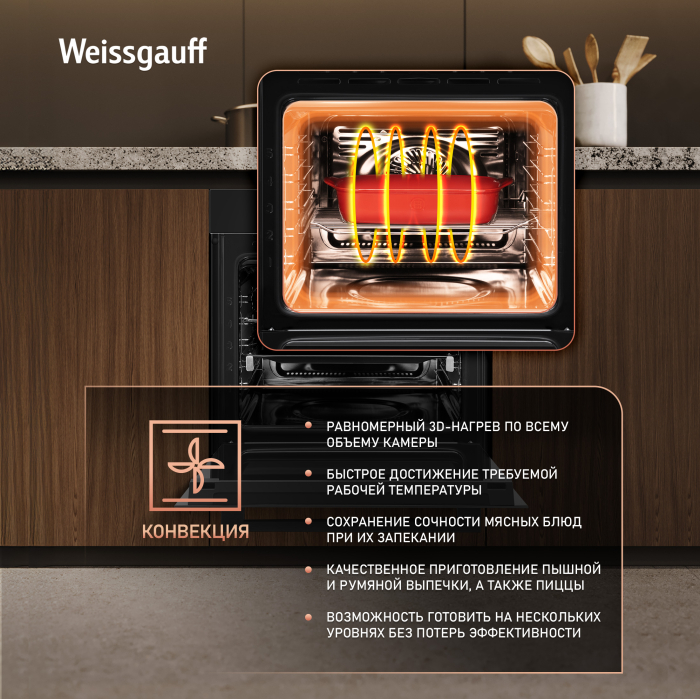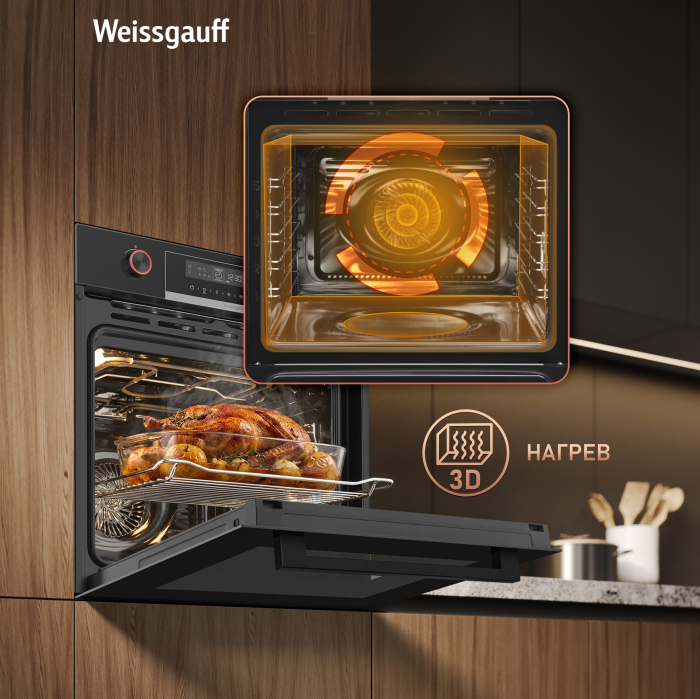 Встраиваемый компактный духовой шкаф с СВЧ Weissgauff