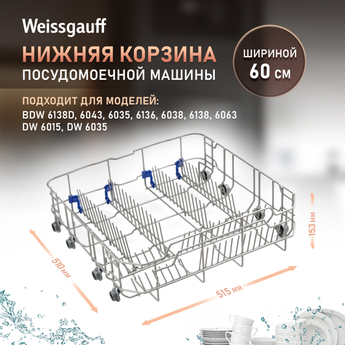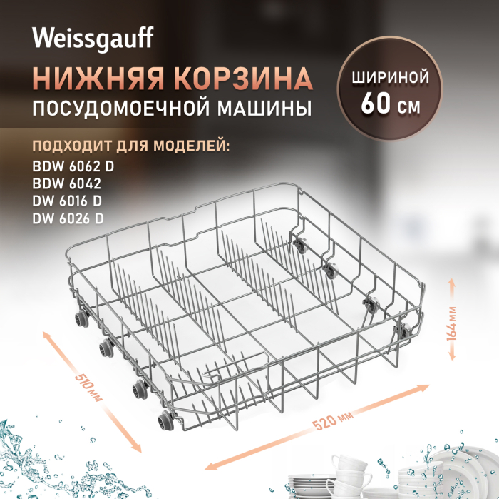 Нижняя корзина для посудомоечной машины Weissegauff шириной 60 см (427709)