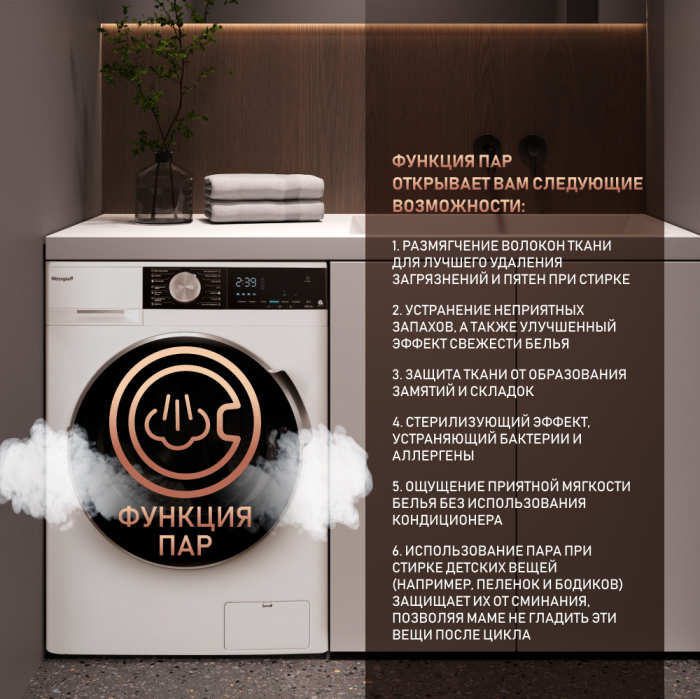 Cтиральная машина с прямым приводом инвертором и паром Weissgauff