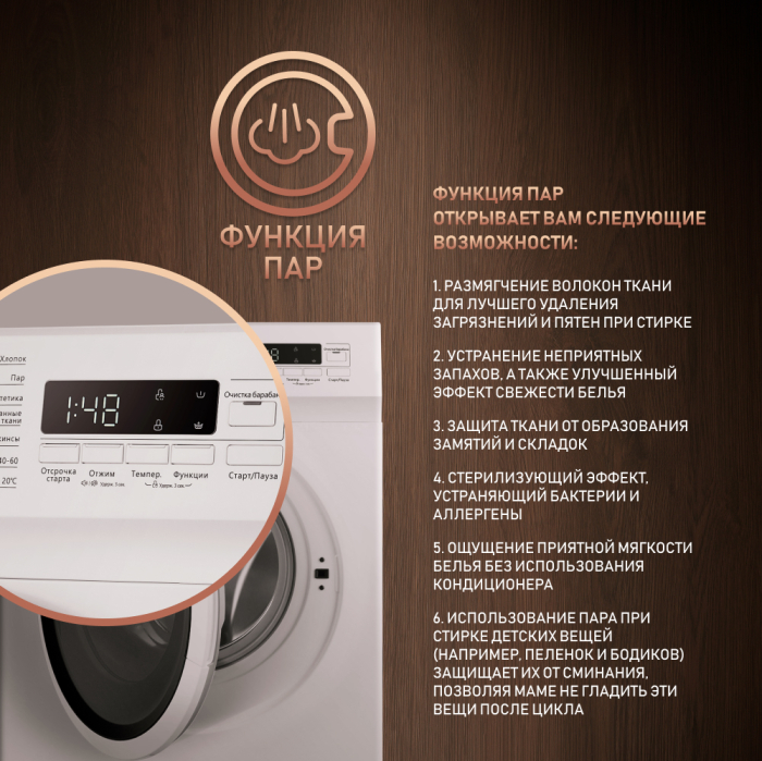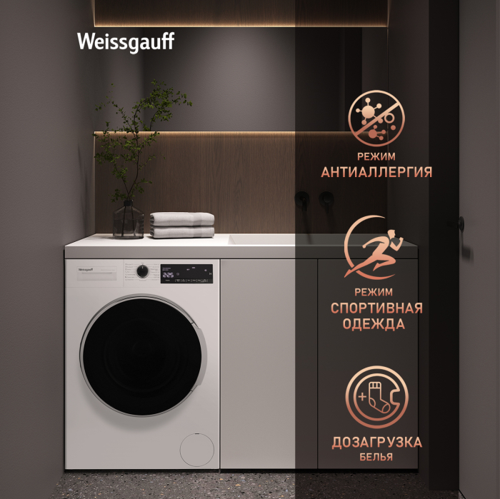 Cтиральная машина с прямым приводом, инвертором и паром Weissgauff