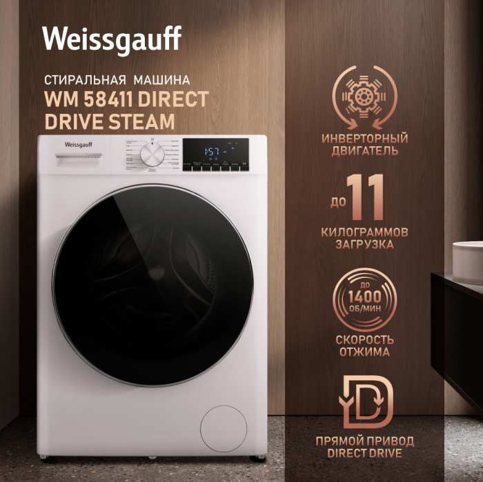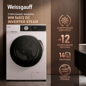 Cтиральная машина с прямым приводом, инвертором и паром Weissgauff
