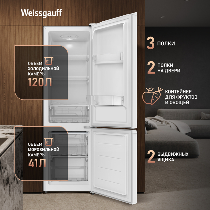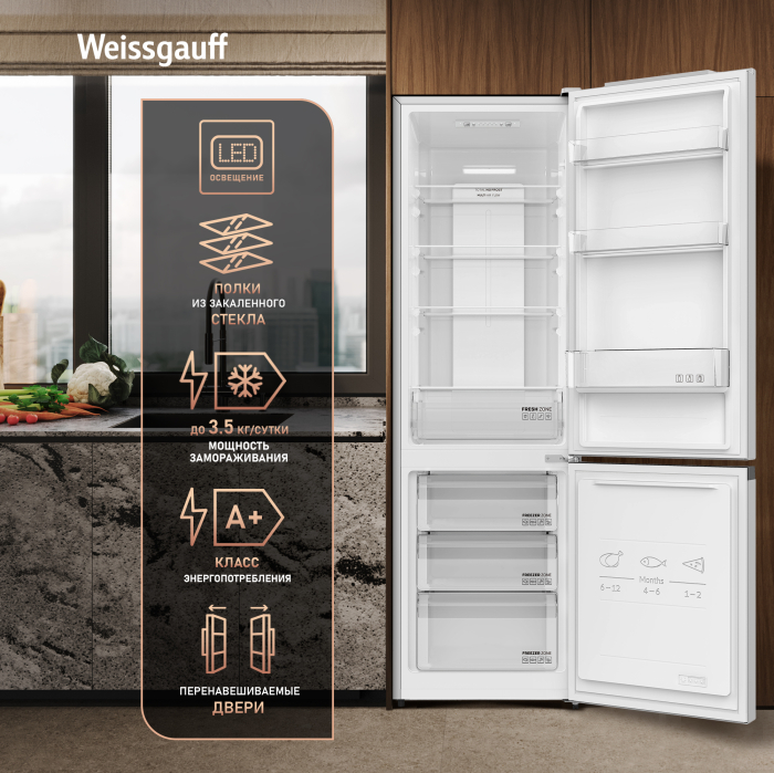 • Размораживание: Full No Frost (система NoFrost и в холодильной, и в морозильной камерах)