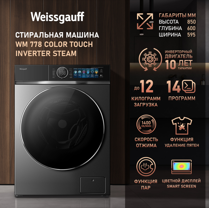 Стиральная машина с сушкой, инвертором и паром Weissgauff