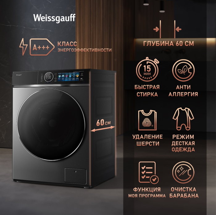Cтиральная машина с автодозированием, ультрафиолетом, инвертором и паром Weissgauff