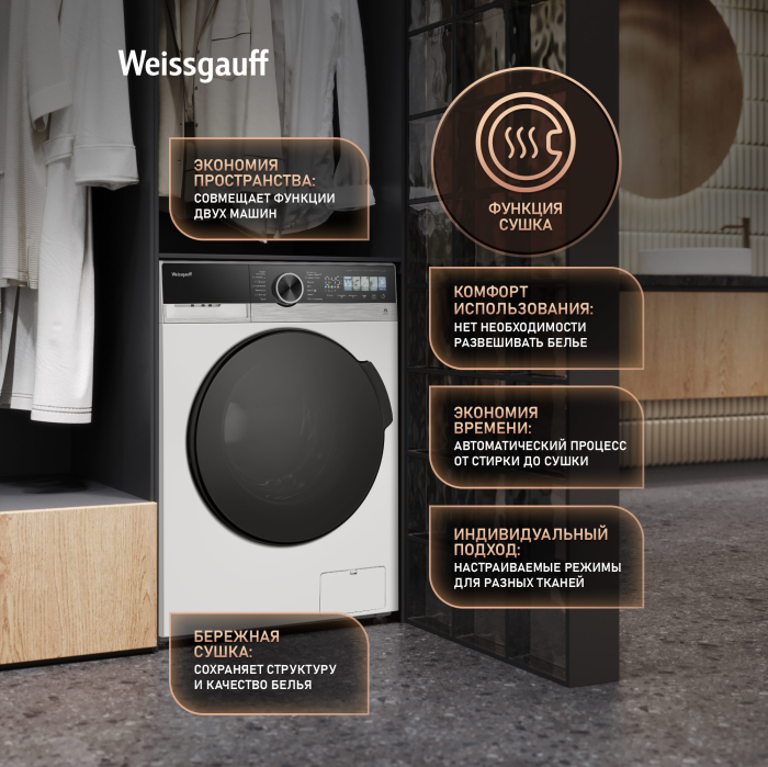 Стиральная машина с сушкой, инвертором и паром Weissgauff