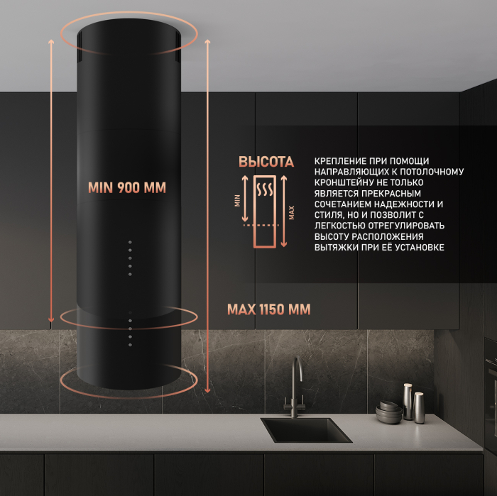 Кухонная цилиндрическая островная вытяжка Weissgauff