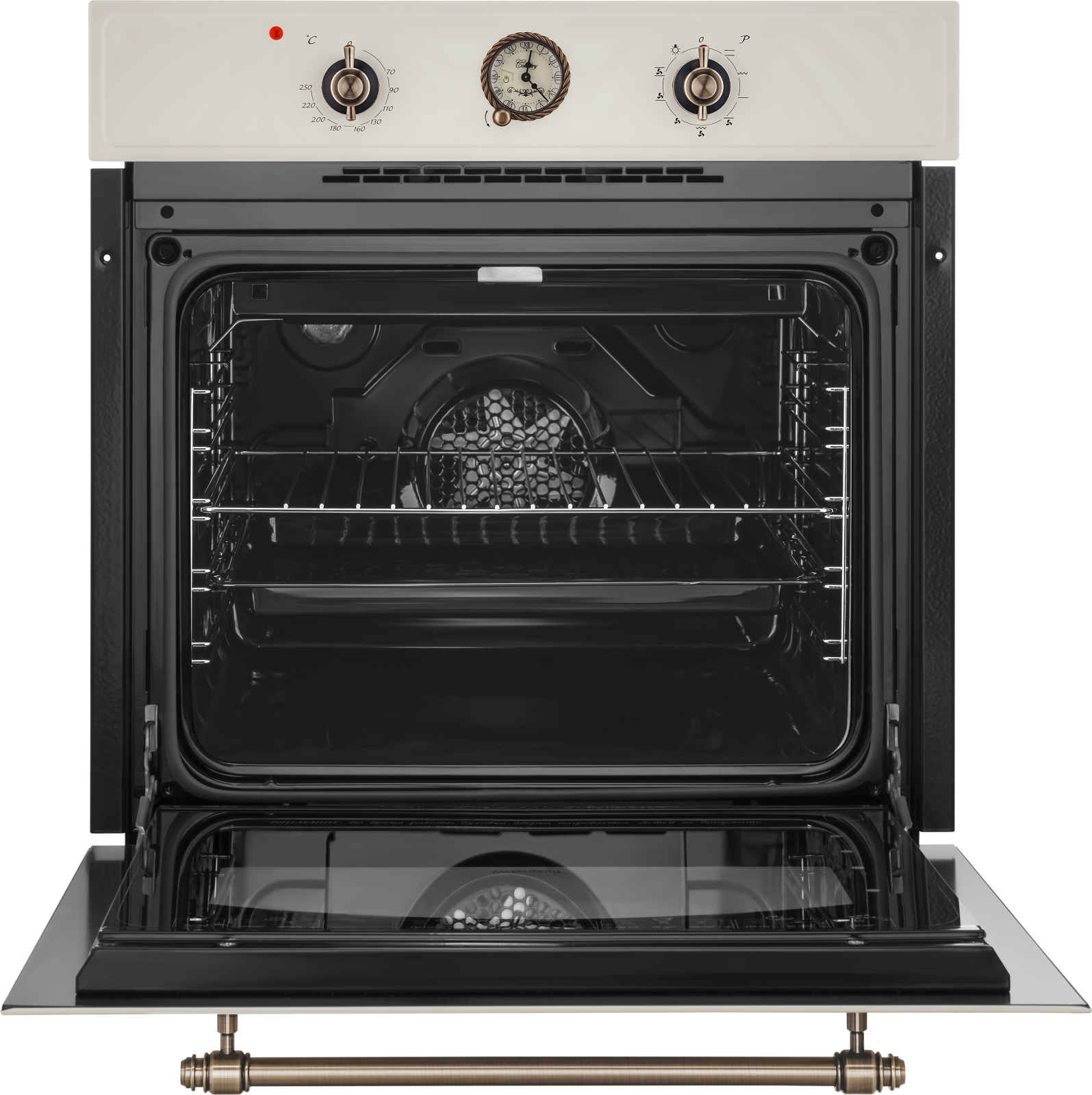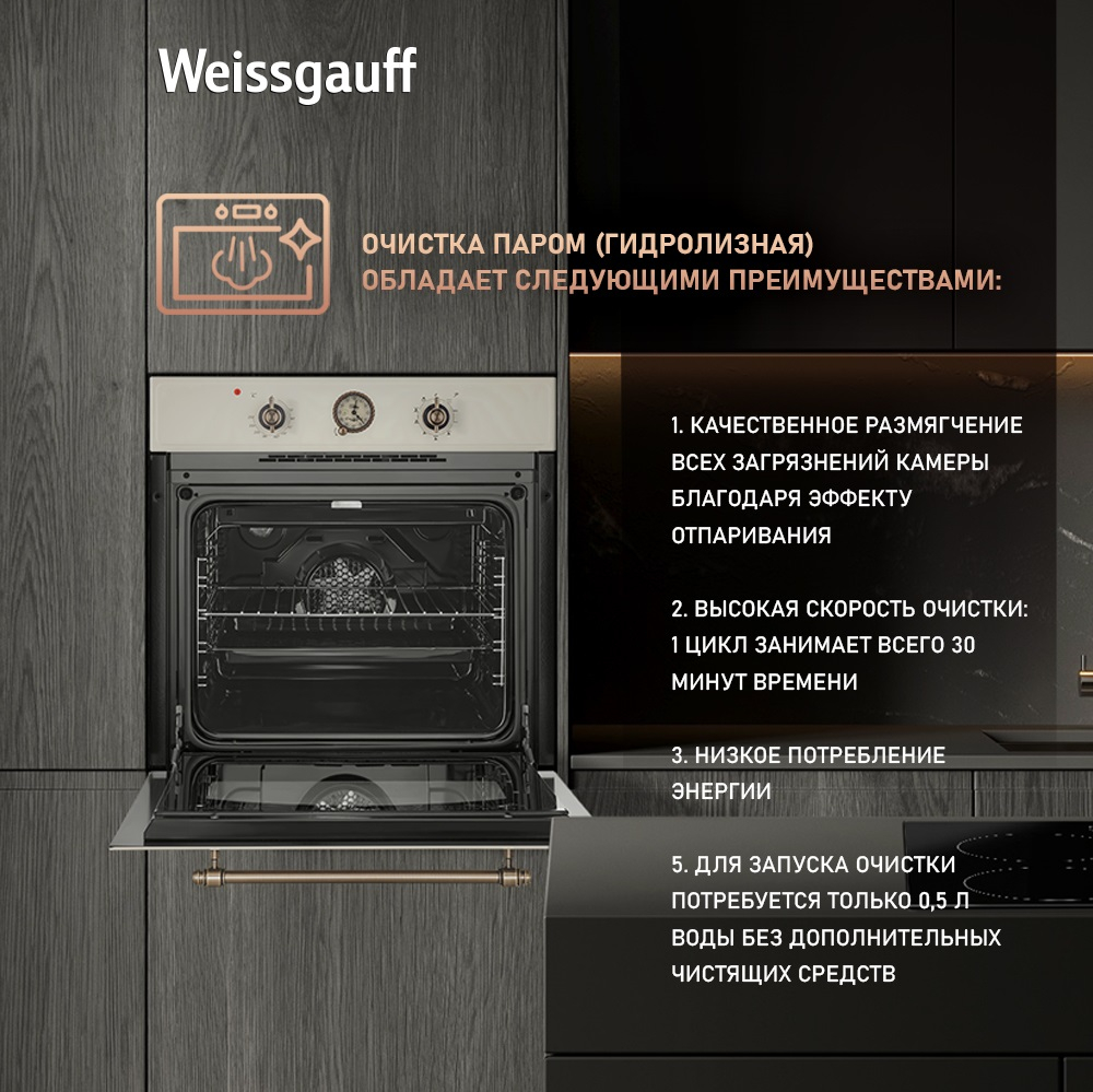 Новинка от Weissgauff - духовой шкаф из коллекции RUSTIC в цвете "слоновая кость" - это целых 9 режимов приготовления пищи, аналоговый программатор в ретро-дизайне, а также рукоятки класса "люкс".