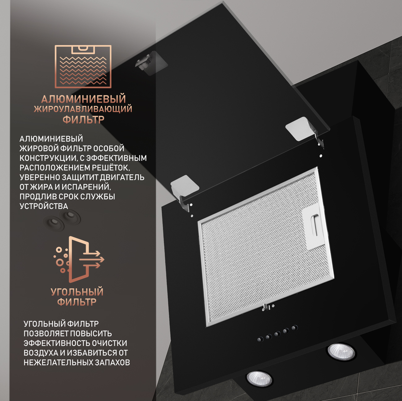 Возможность установки угольного фильтра станет отличным решением для вытяжки, работающей в режиме рециркуляции, позволяющим повысить эффективность очистки воздуха и избавиться от нежелательных запахов!