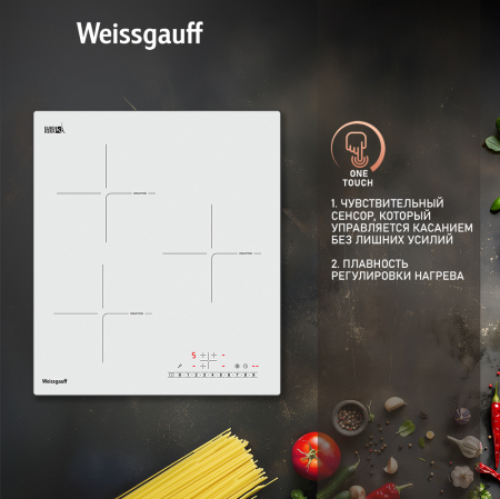 Индукционная панель Weissgauff, выполненная в белом стекле с особым дизайном конфорок Cross-Zone и непрерывным нагревом выводит на новый уровень понимание того, насколько эффективной может быть компактная индукционная варочная поверхность шириной всего 45 см!