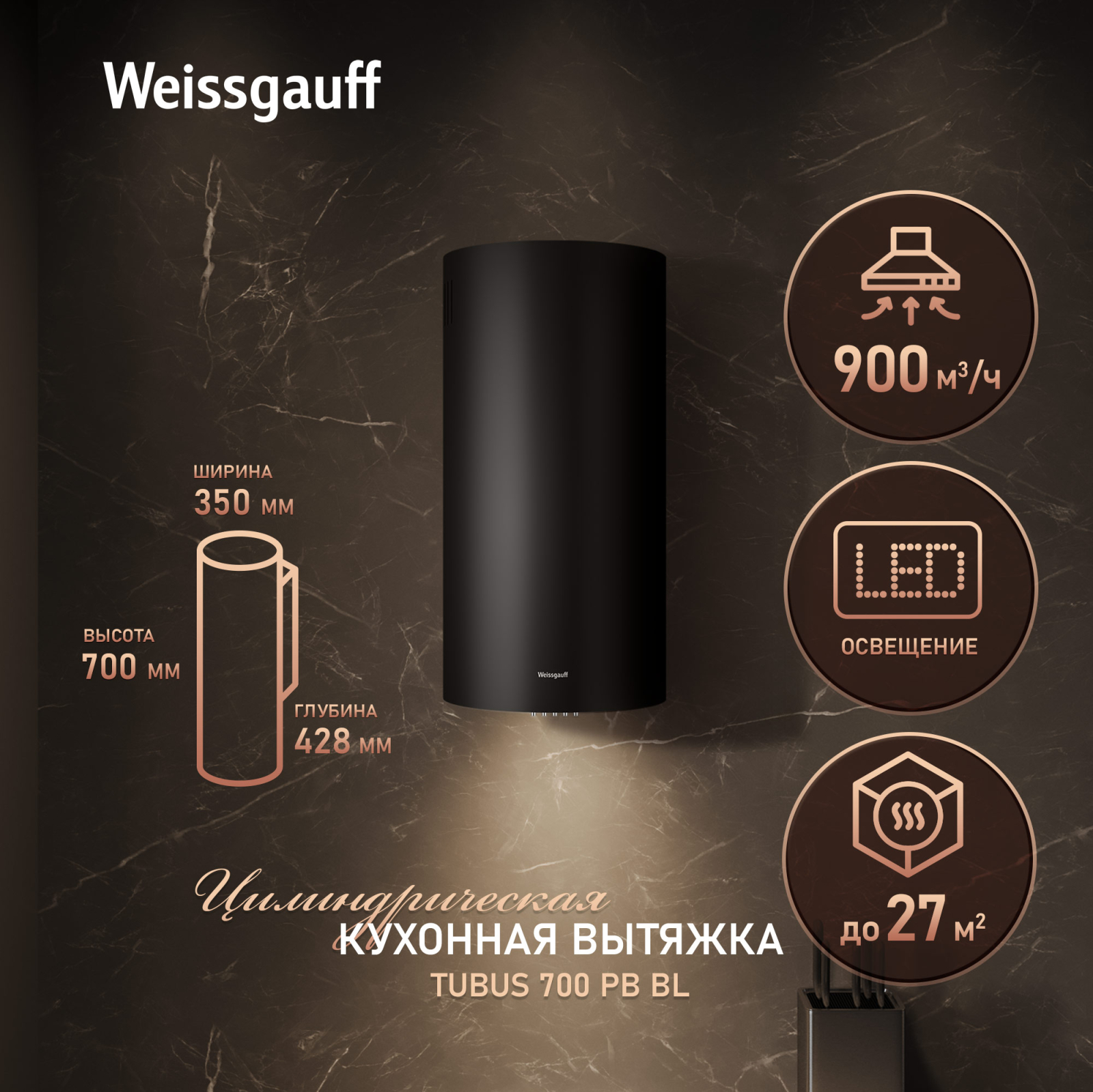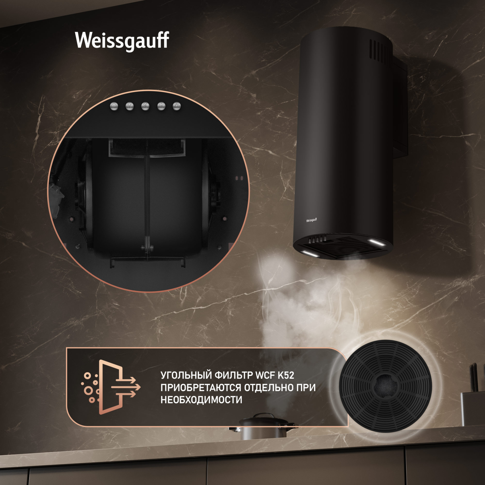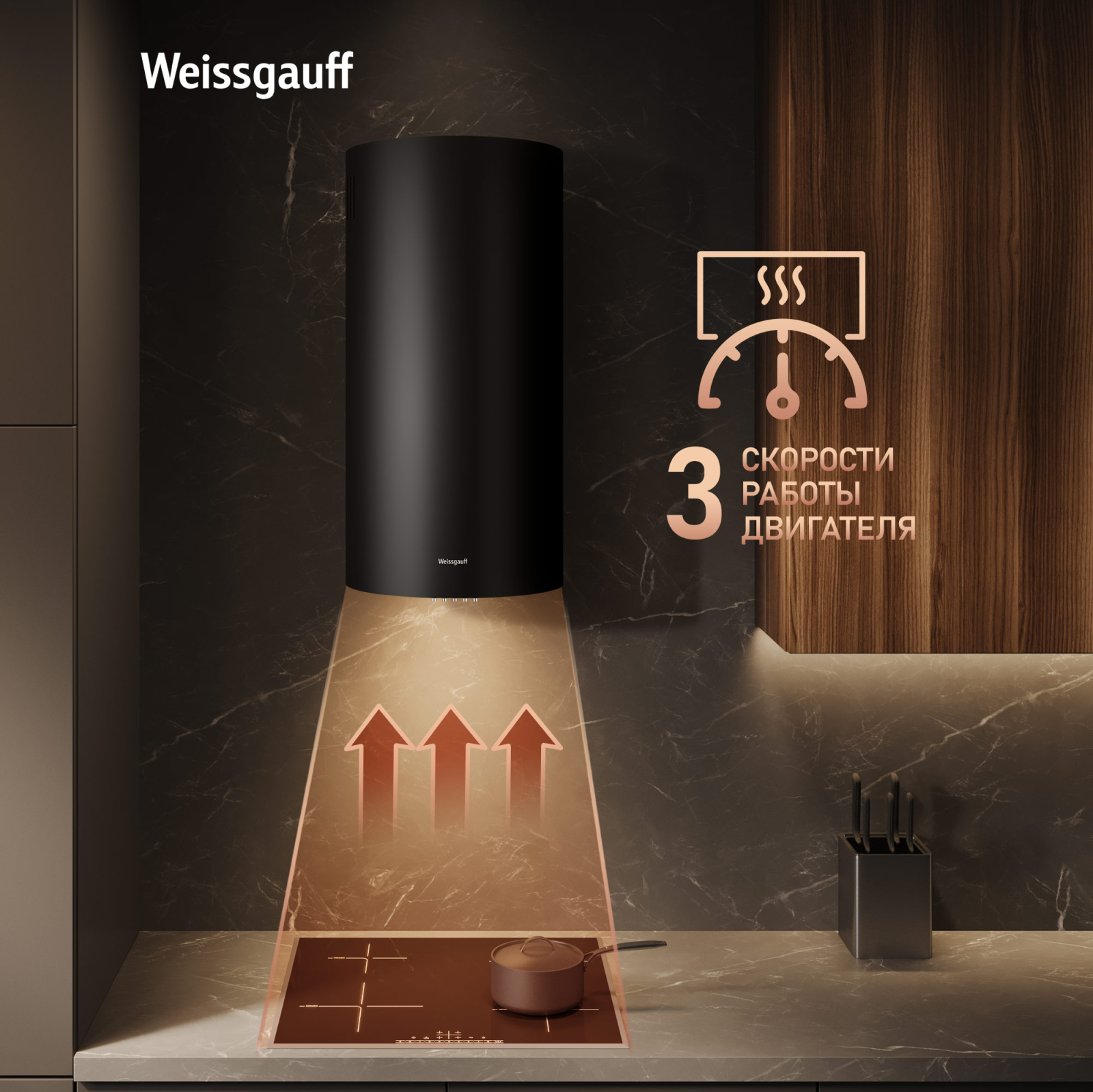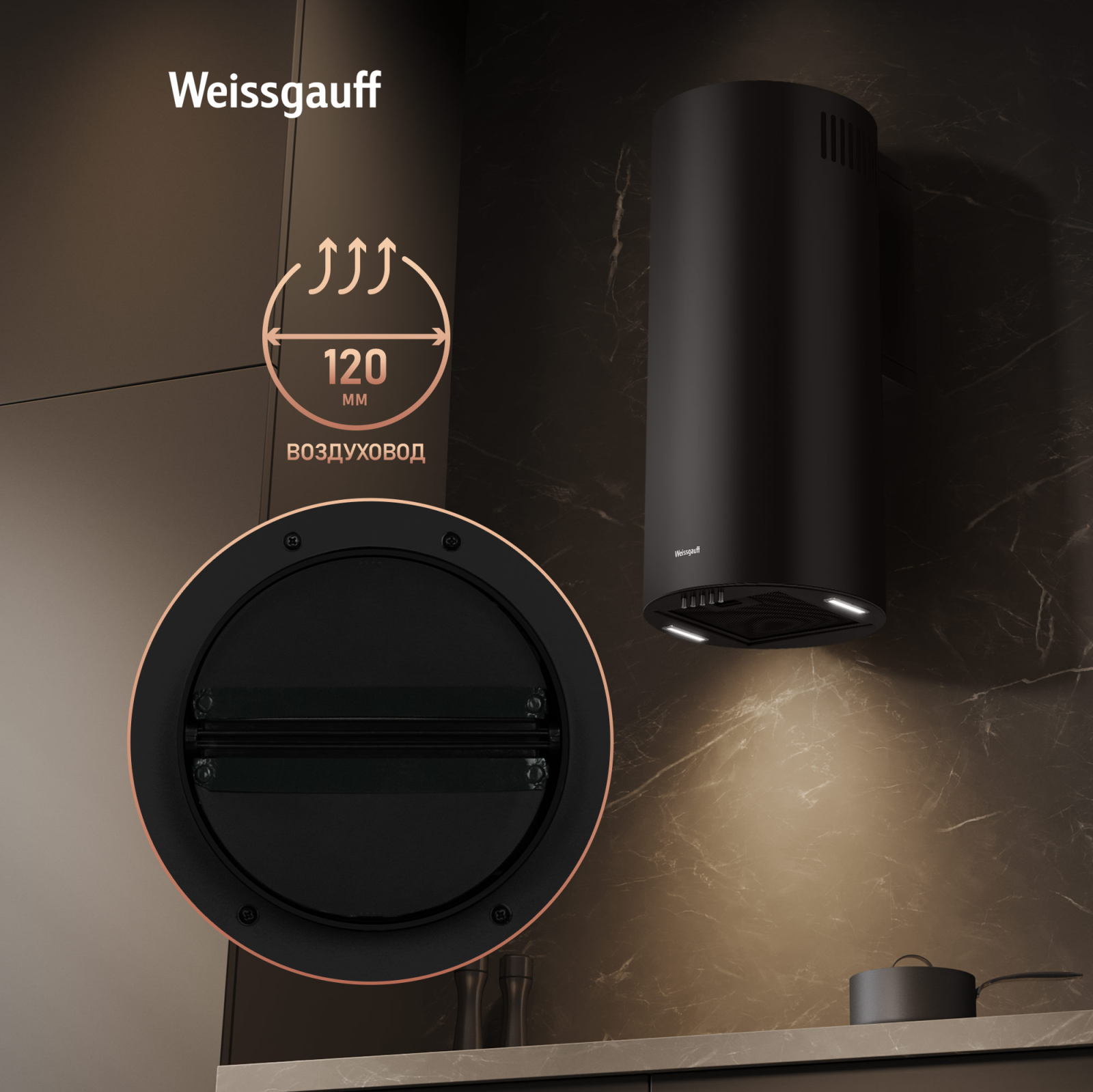 Эффективная работа в помещении площадью до 27 м2 - это гарантия того, что после установки вытяжки Weissgauff, обновление воздуха будет соответствовать всем требуемым нормам, сохраняя ваше здоровье на долгие годы!