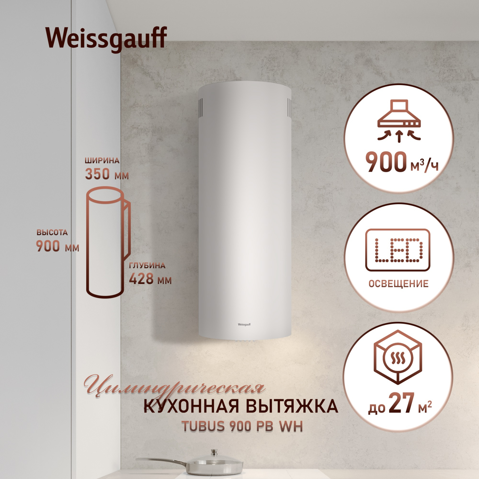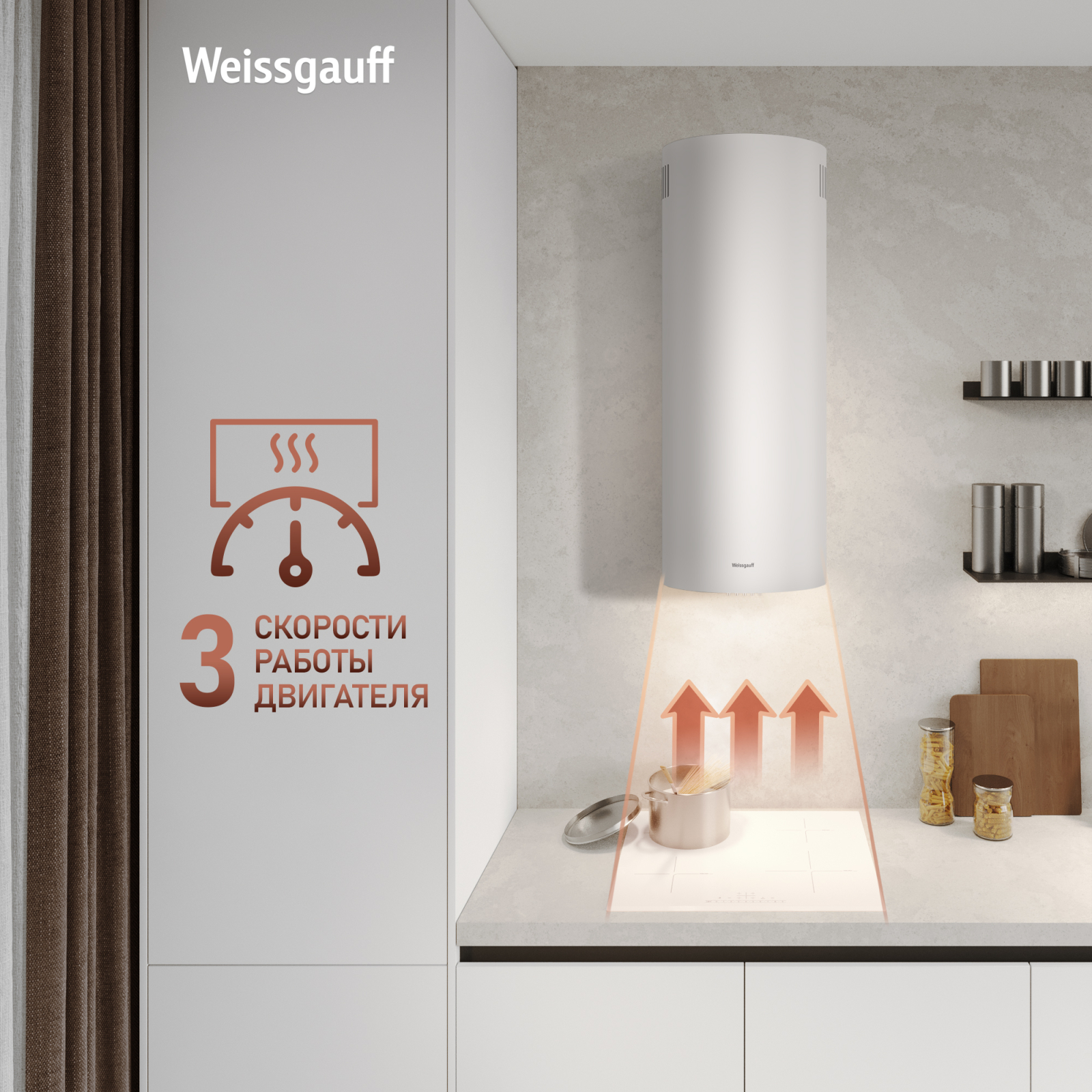 Эффективная работа в помещении площадью до 27 м2 - это гарантия того, что после установки вытяжки Weissgauff, обновление воздуха будет соответствовать всем требуемым нормам, сохраняя ваше здоровье на долгие годы!