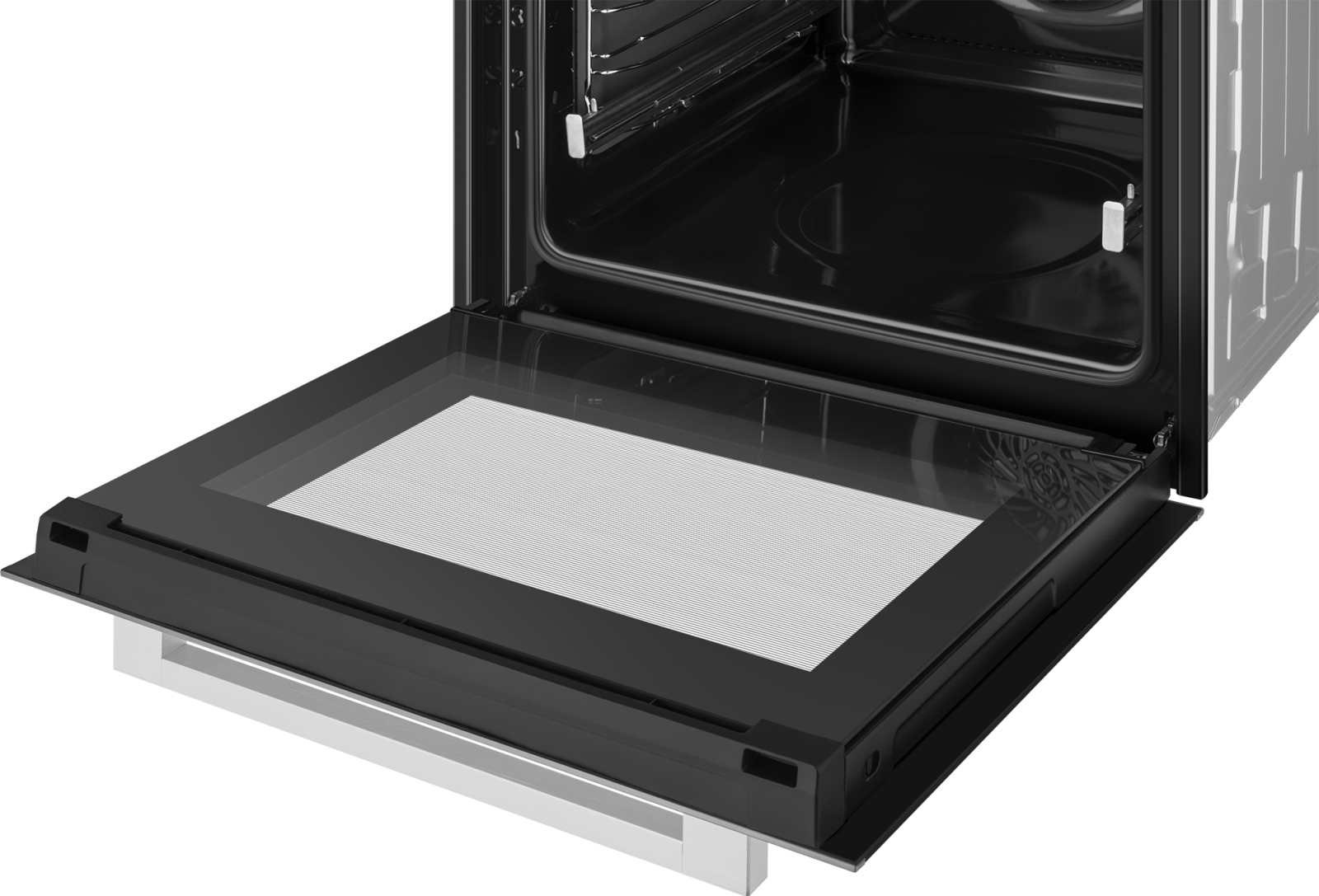 Мягкие доводчики дверцы SOFT CLOSE + SOFT OPEN, позволят защитить ваш духовой шкаф от повреждений при случайном захлопывании дверцы устройства, а также обеспечить мягкое и плавное открытие, когда вам необходим доступ к камере. Реализованная нами в данной модели технология позволяет погасить вибрацию, уменьшить нагрузку на дверцу и корпус духового шкафа, автоматически доводя дверцу мягким и плавным движением.
