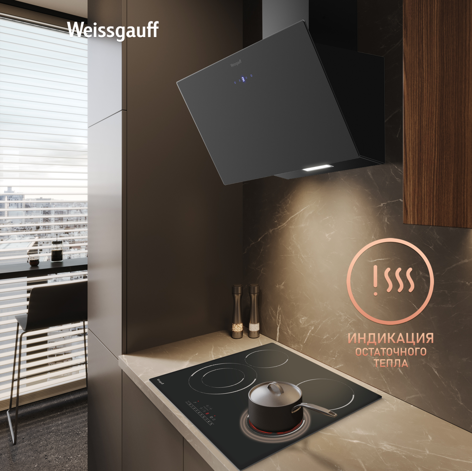 Блок управления-слайдер, позволяющий всего в одно касание выставить необходимый вам уровень нагрева любой из конфорок и делающий процесс управления панелью значительно более быстрым и легким!