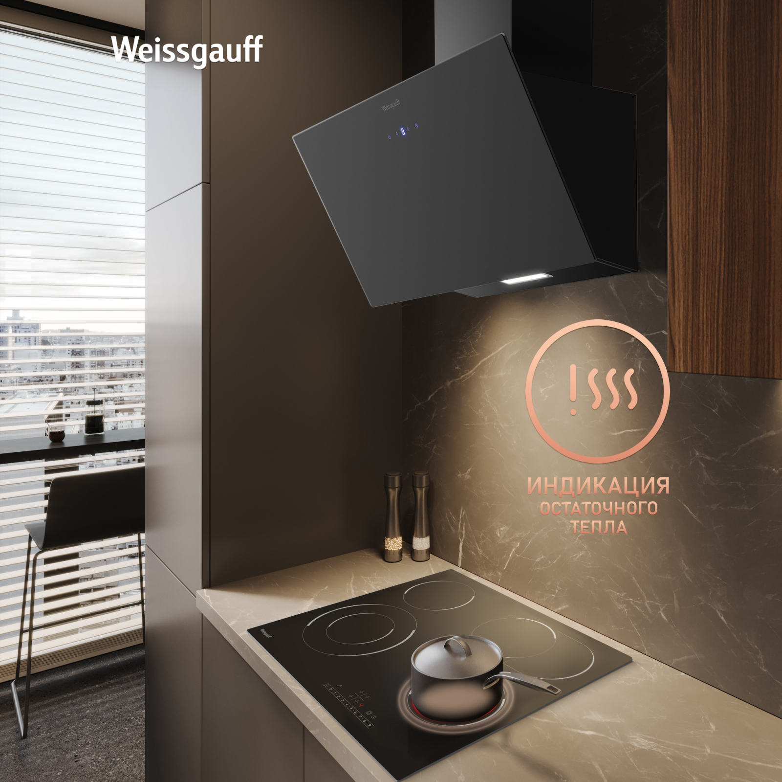 Блок управления-слайдер, позволяющий всего в одно касание выставить необходимый вам уровень нагрева любой из конфорок и делающий процесс управления панелью значительно более быстрым и легким!