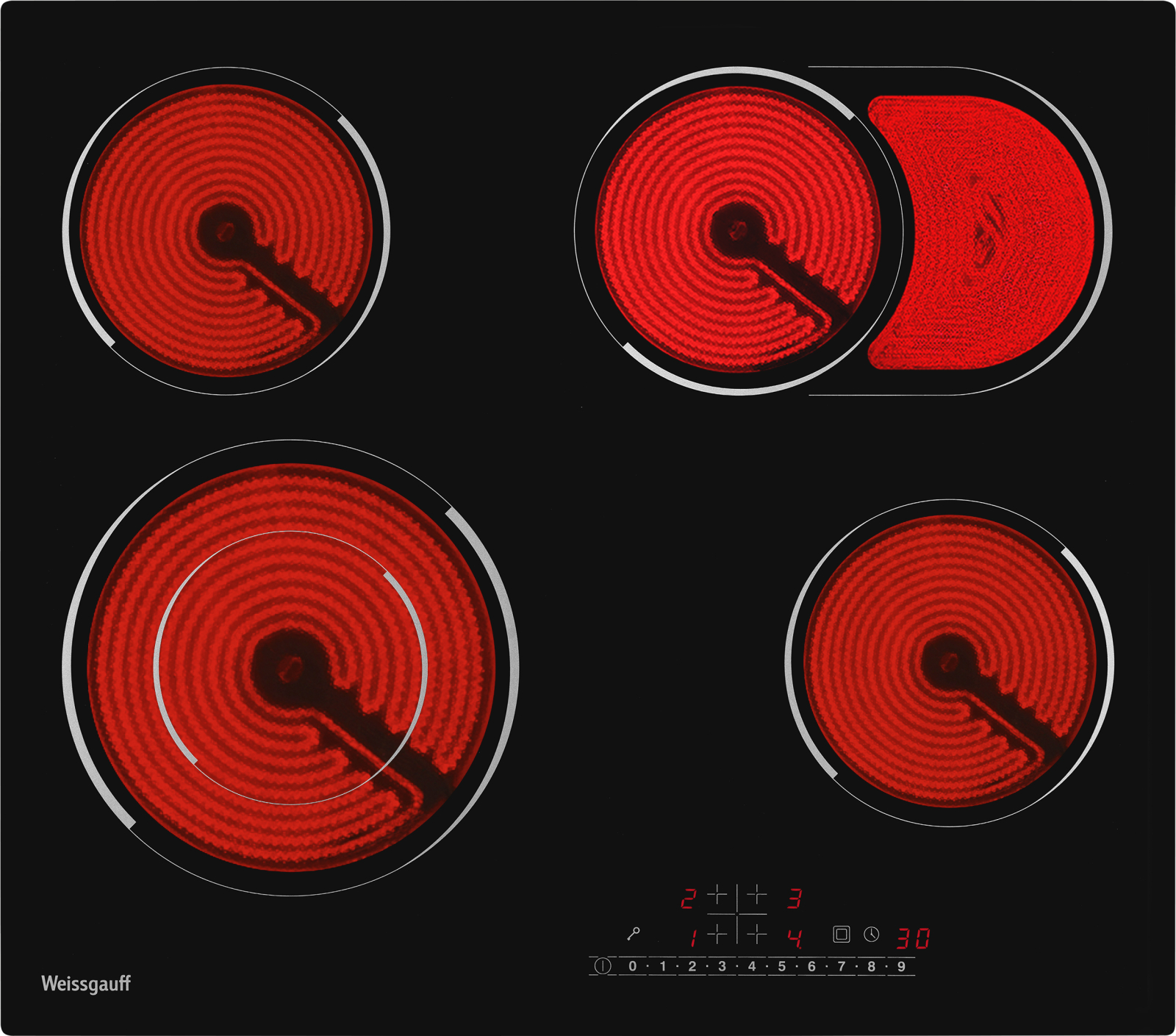 Стеклокерамическая панель с дополнительной овальной зоной и двухконтурной конфоркой сочетает в себе возможности приготовления в посуде разной формы и диаметра по более, чем доступной цене. Золотая середина варочных панелей Weissgauff.