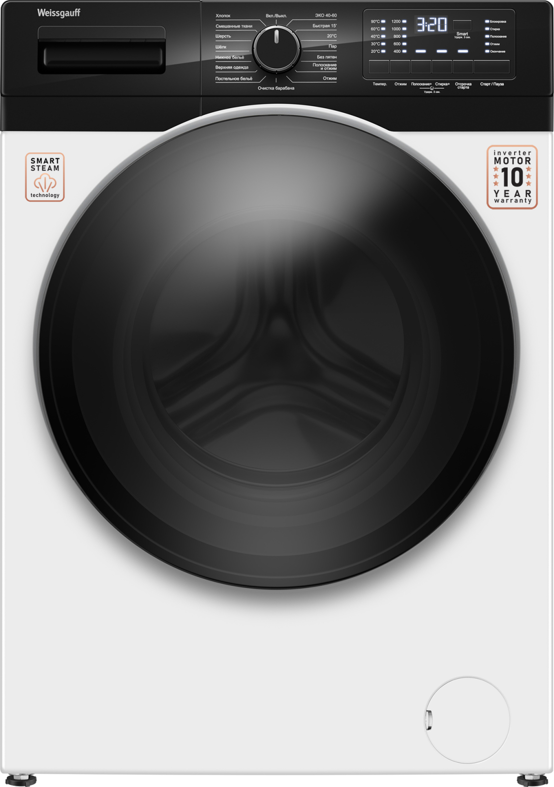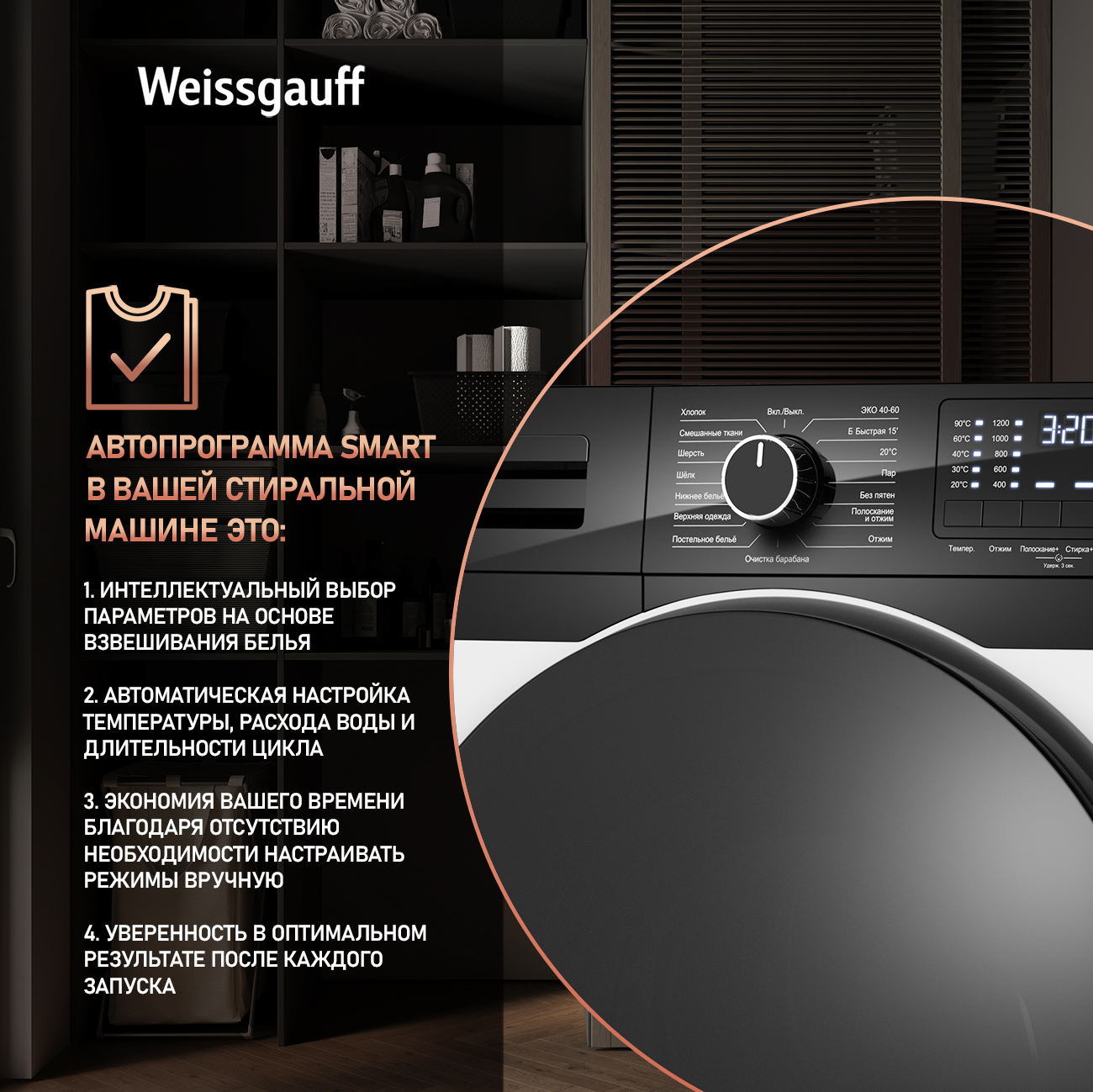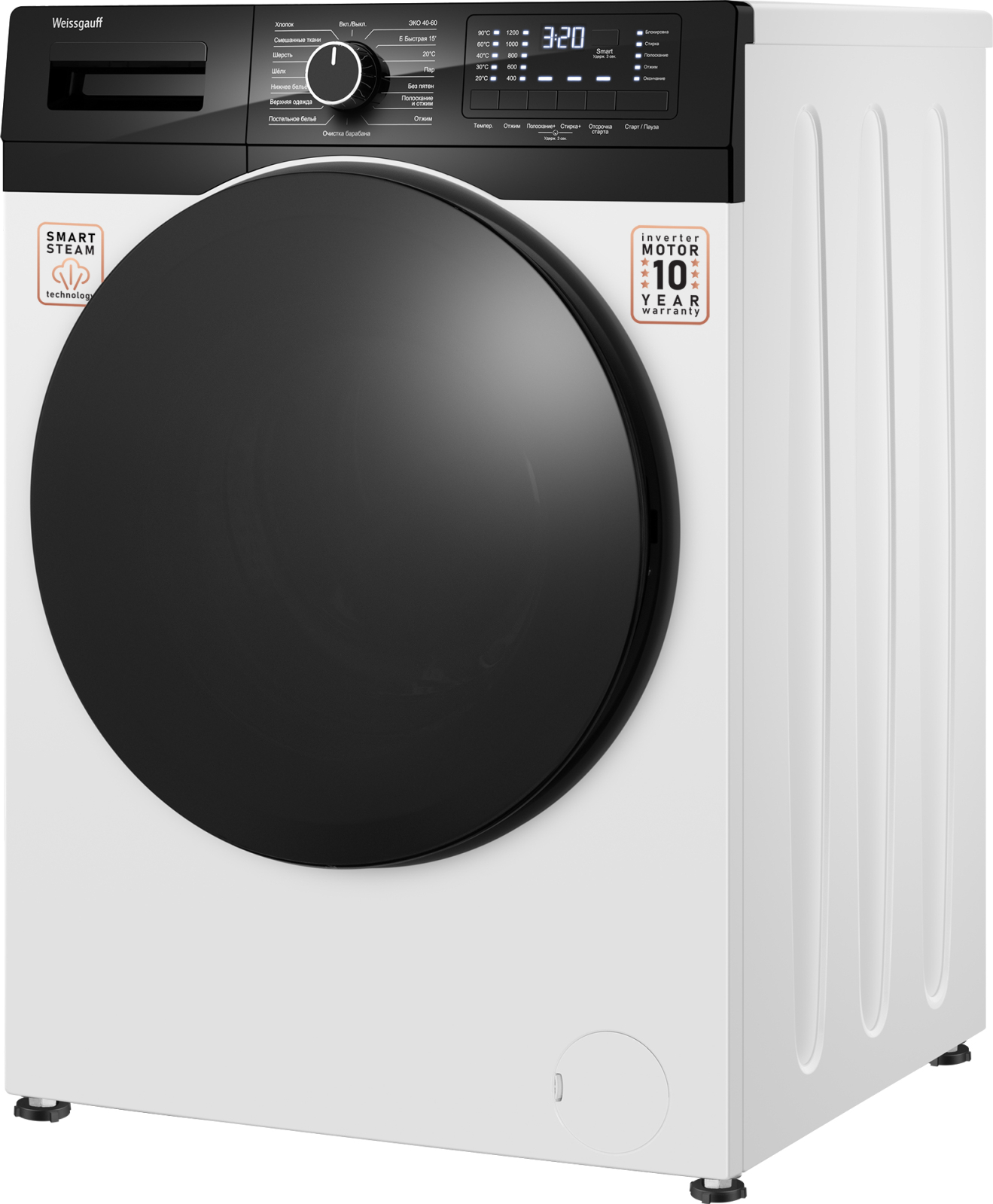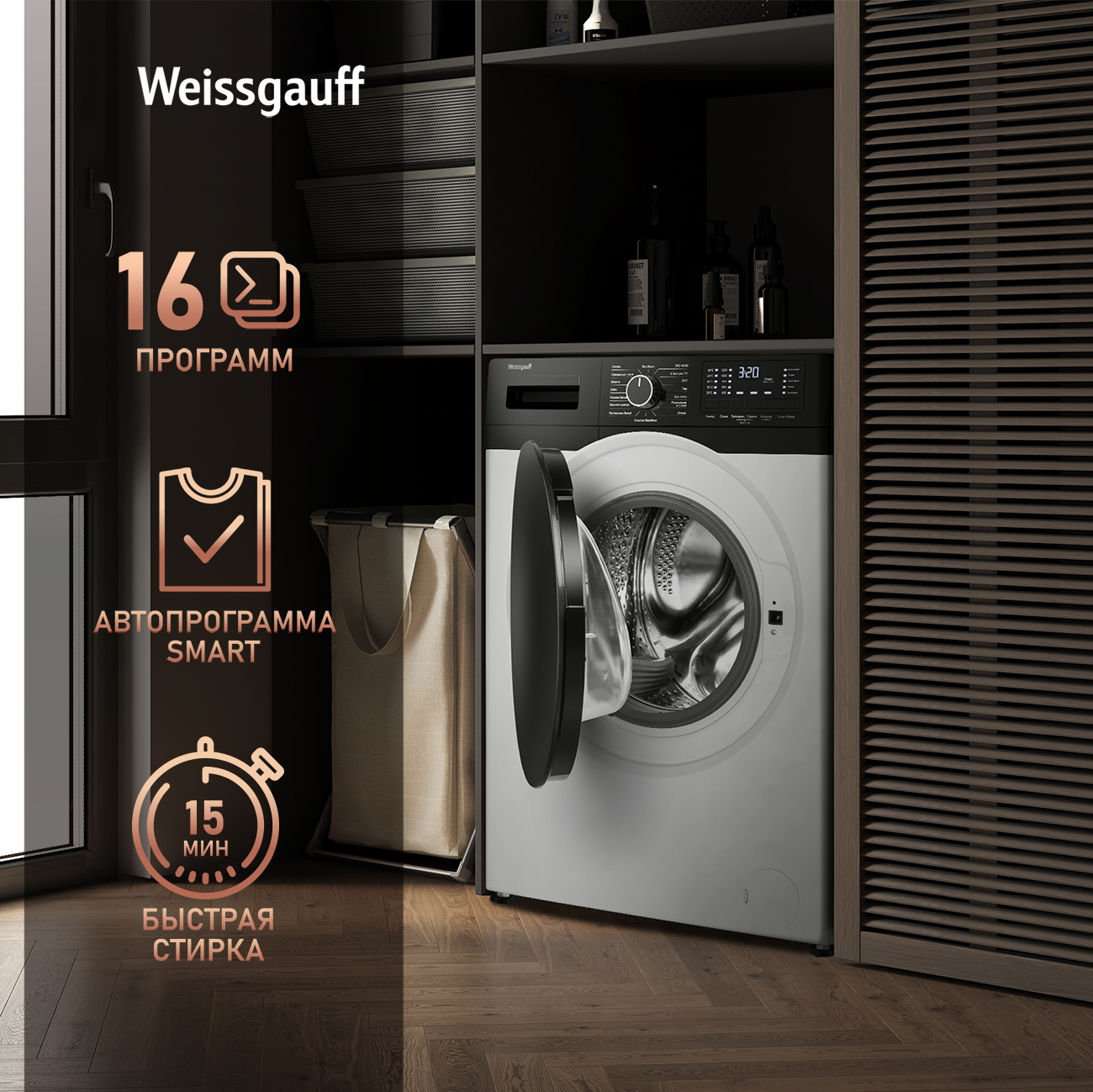 Отдельностоящая стиральная машина Weissgauff, оснащенная современным инверторным двигателем, функцией пара и автопрограммой Smart, имеющая впечатляющие показатели загрузки до 12 кг белья и скорости отжима до 1200 оборотов в минуту - это настоящее воплощение основного принципа Weissgauff "Качество, доступное каждому"!