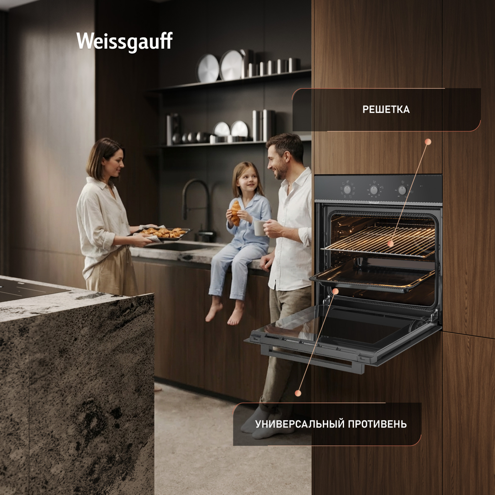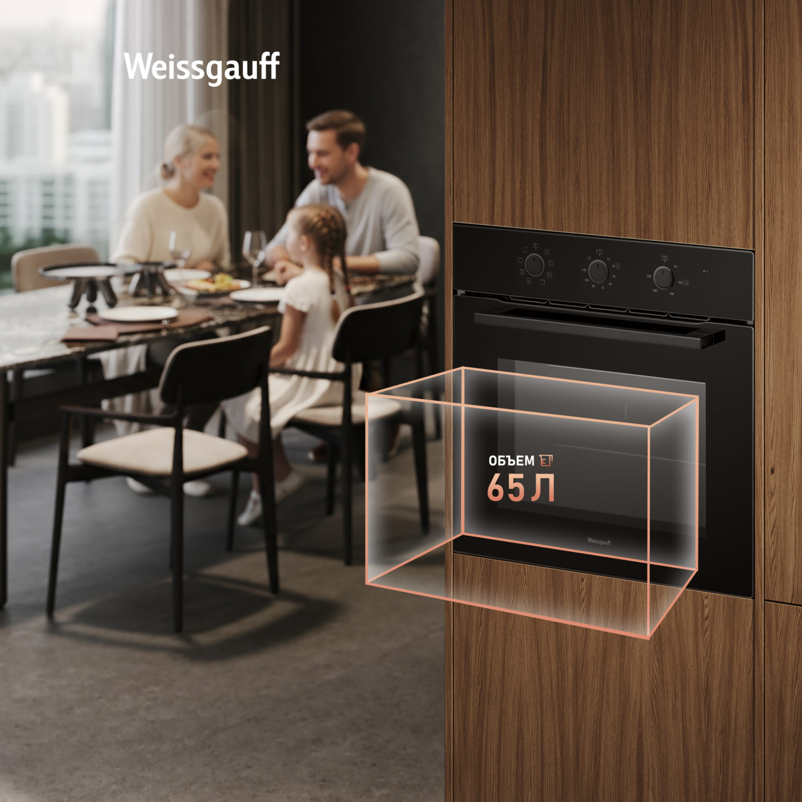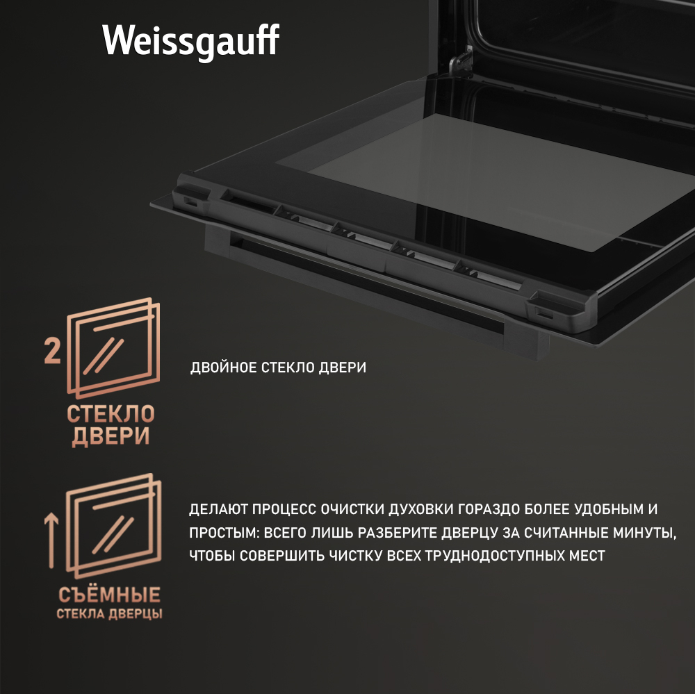 Дизайн в черном цвете - станет финальным штрихом в совершенстве облика этой модели. Каждый раз, взаимодействуя с духовым шкафом от Weissgauff, вы будете в полной мере ощущать, как он способен нагревать не только еду, но и согревать душу, став настоящим сердцем вашего уютного домашнего очага