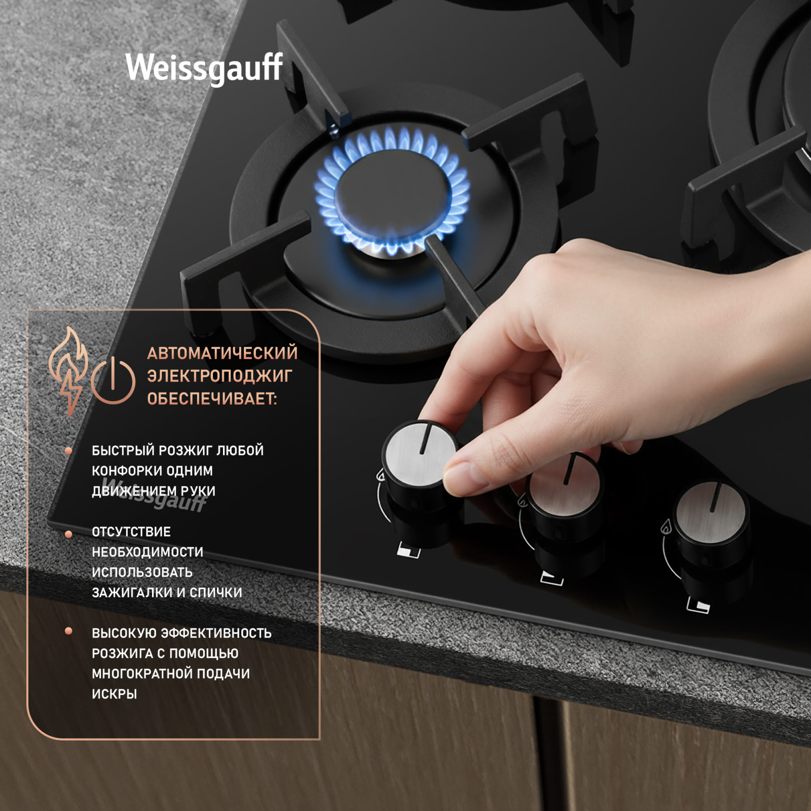 Варочная панель Weissgauff, оснащённая автоматическим электроподжигом и мощной WOK-конфоркой - это одна из наиболее современных и функциональных моделей, исполненная в чёрном закалённом стекле с раздельными решетками из высококачественного чугуна