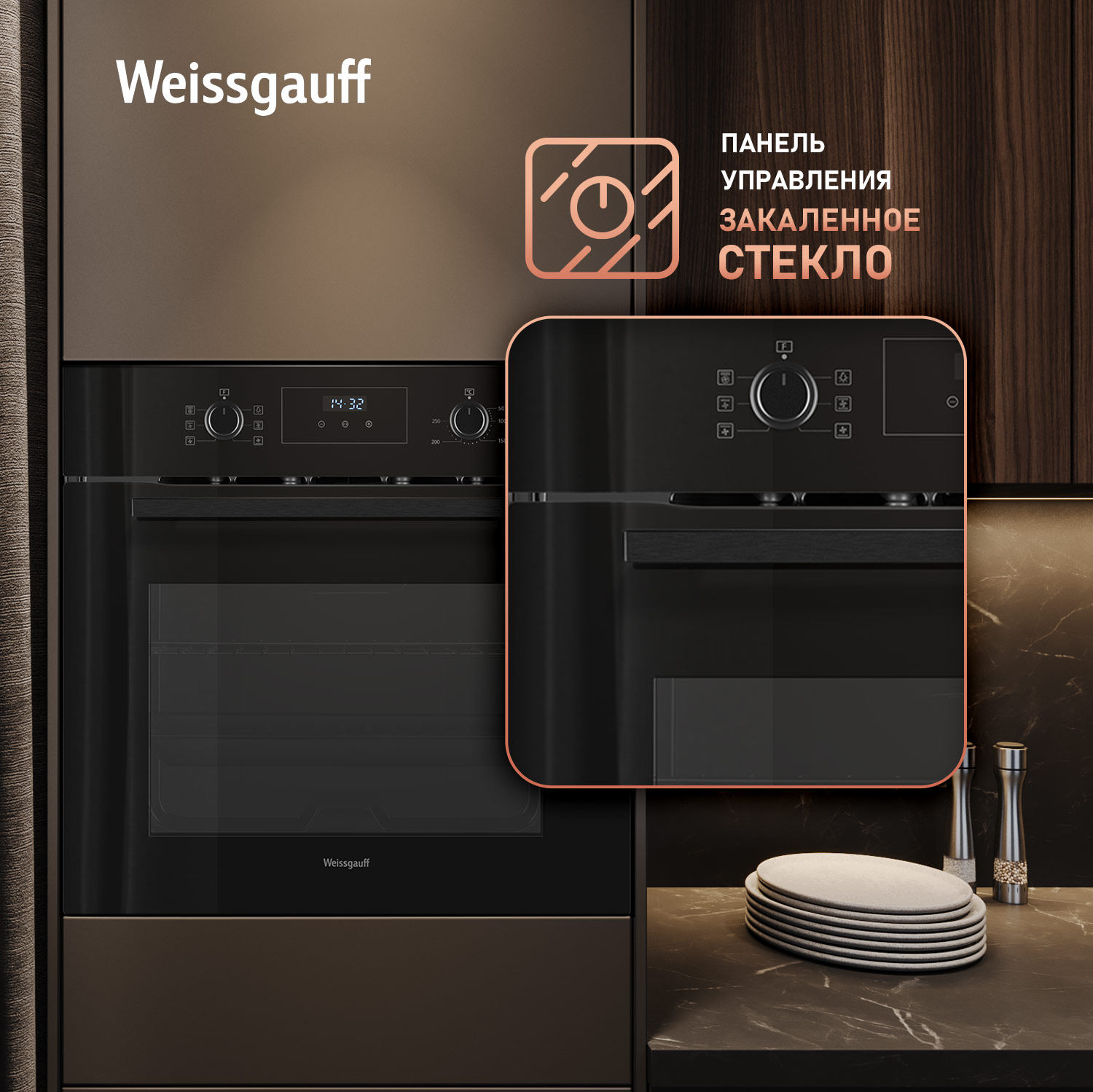 Дизайн в черном цвете - станет финальным штрихом в совершенстве облика этой модели. Каждый раз, взаимодействуя с духовым шкафом от Weissgauff, вы будете в полной мере ощущать, как он способен нагревать не только еду, но и согревать душу, став настоящим сердцем вашего уютного домашнего очага