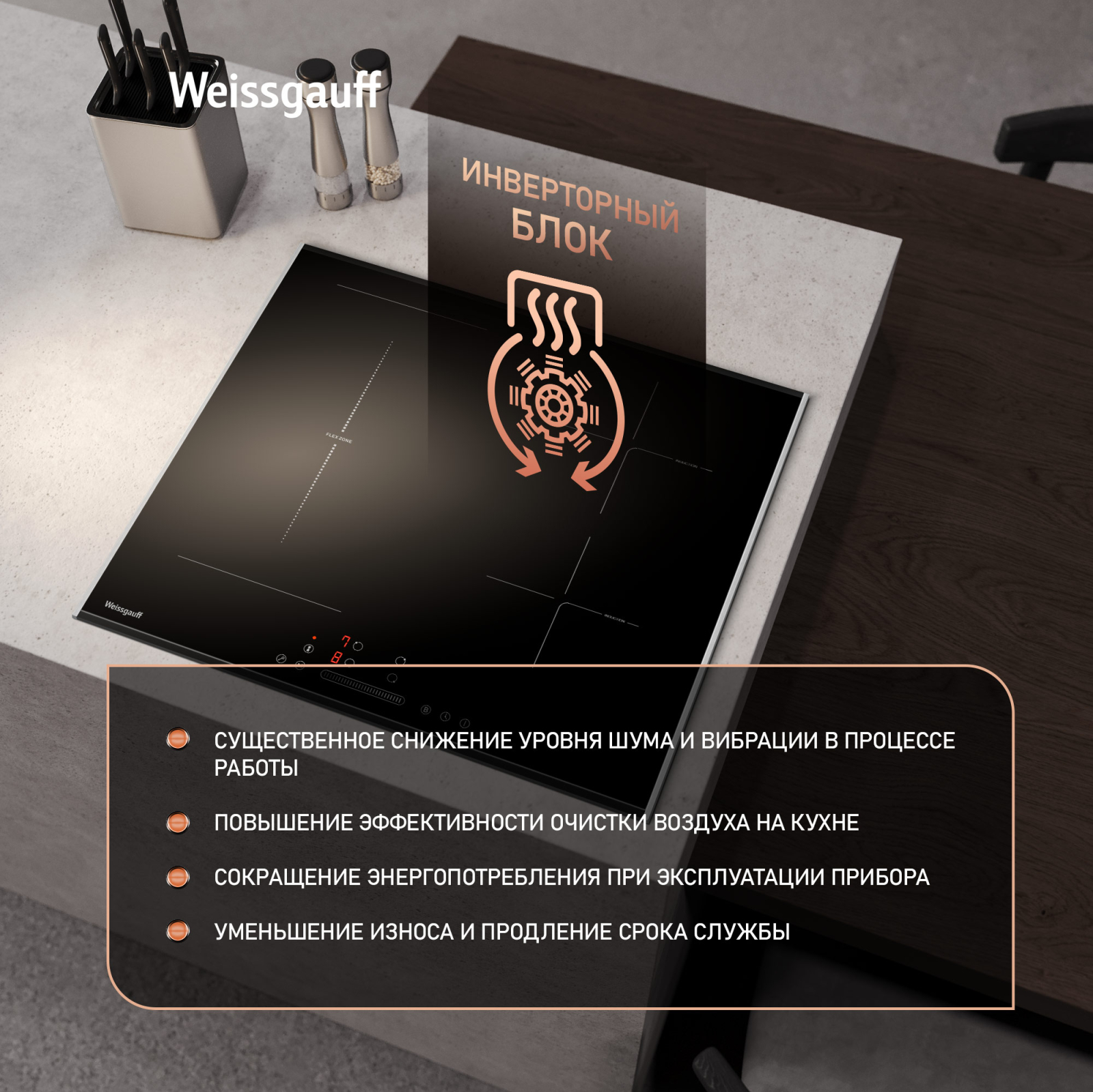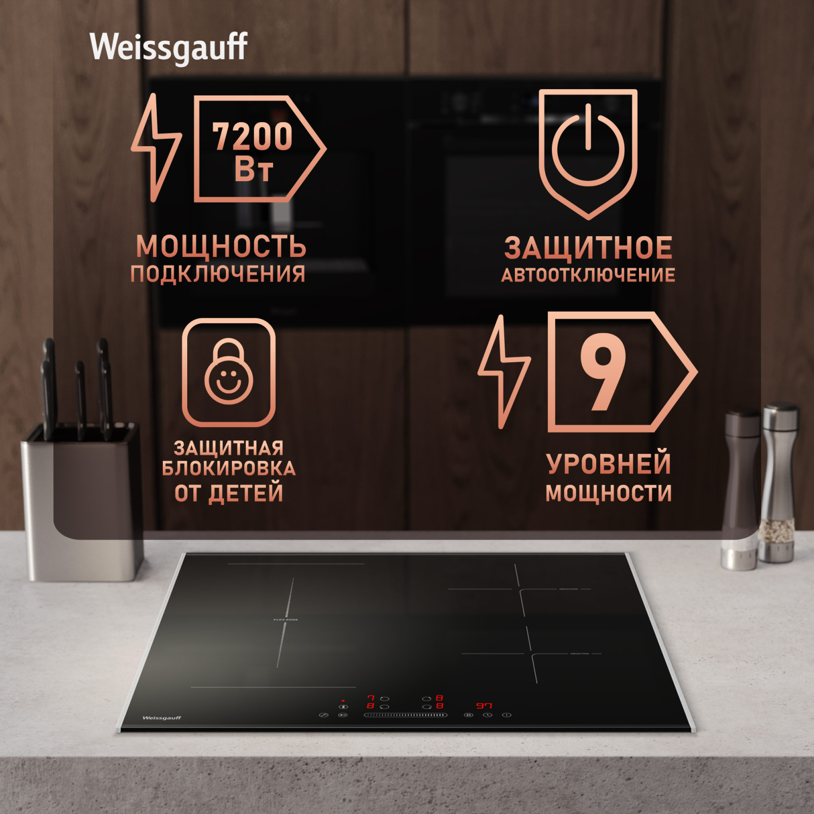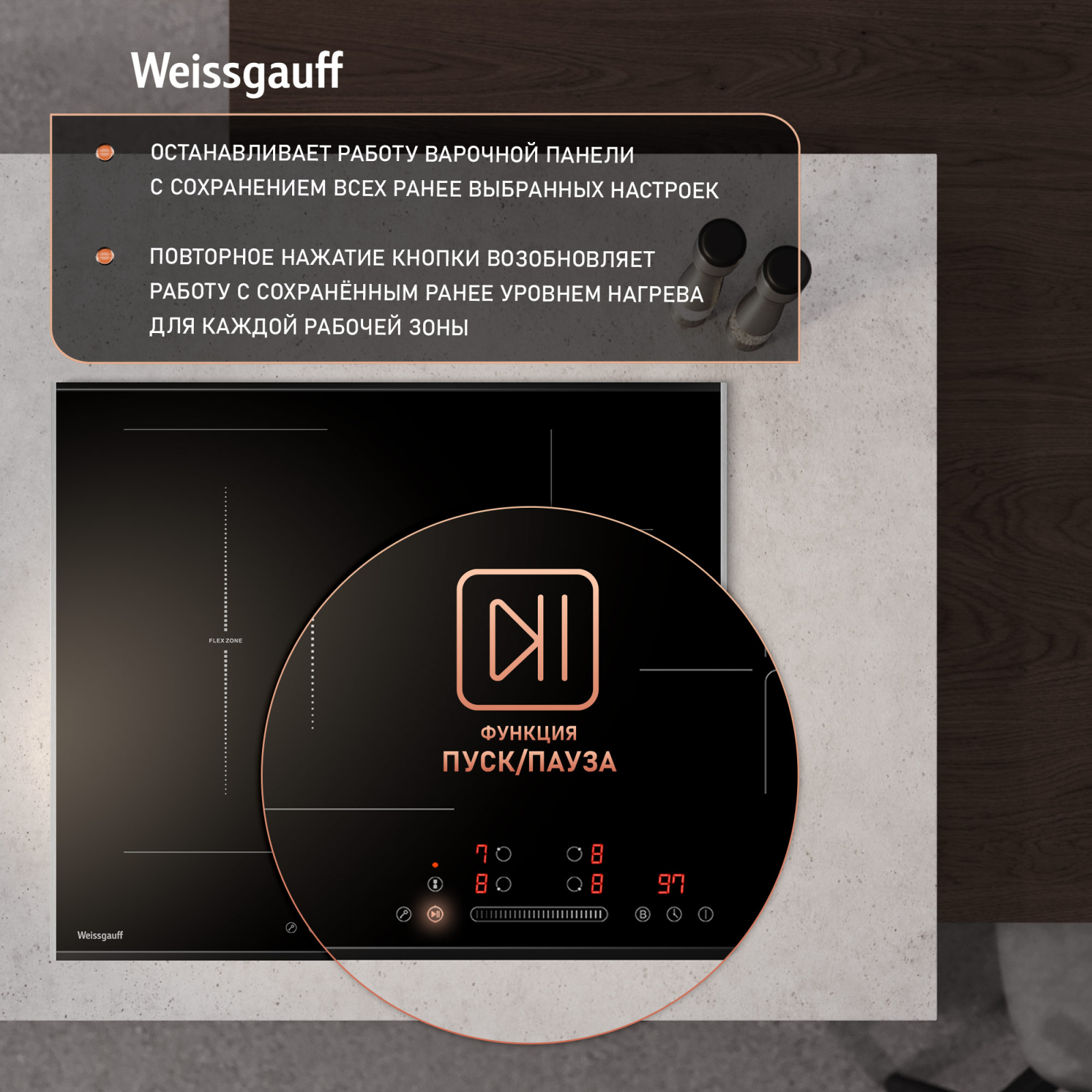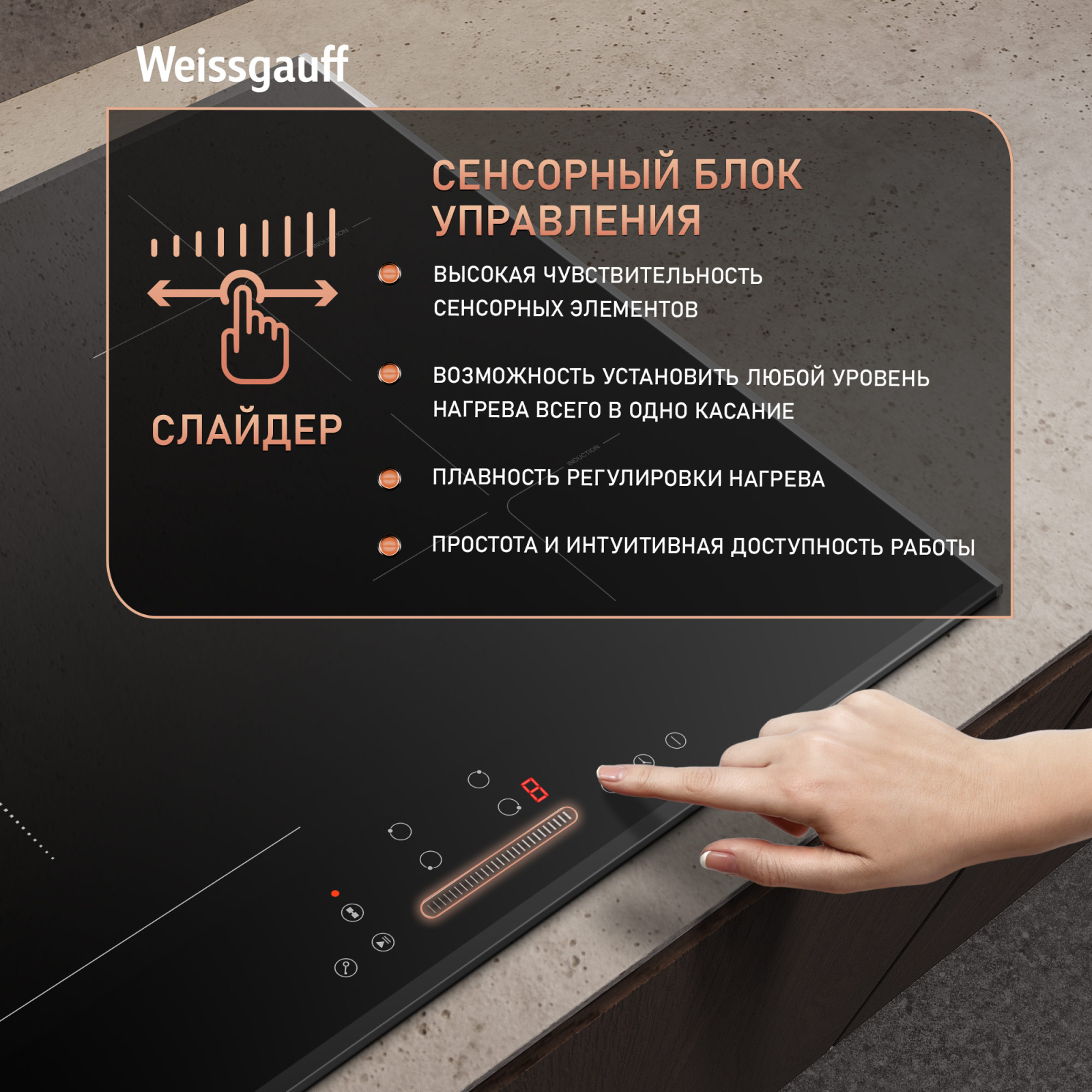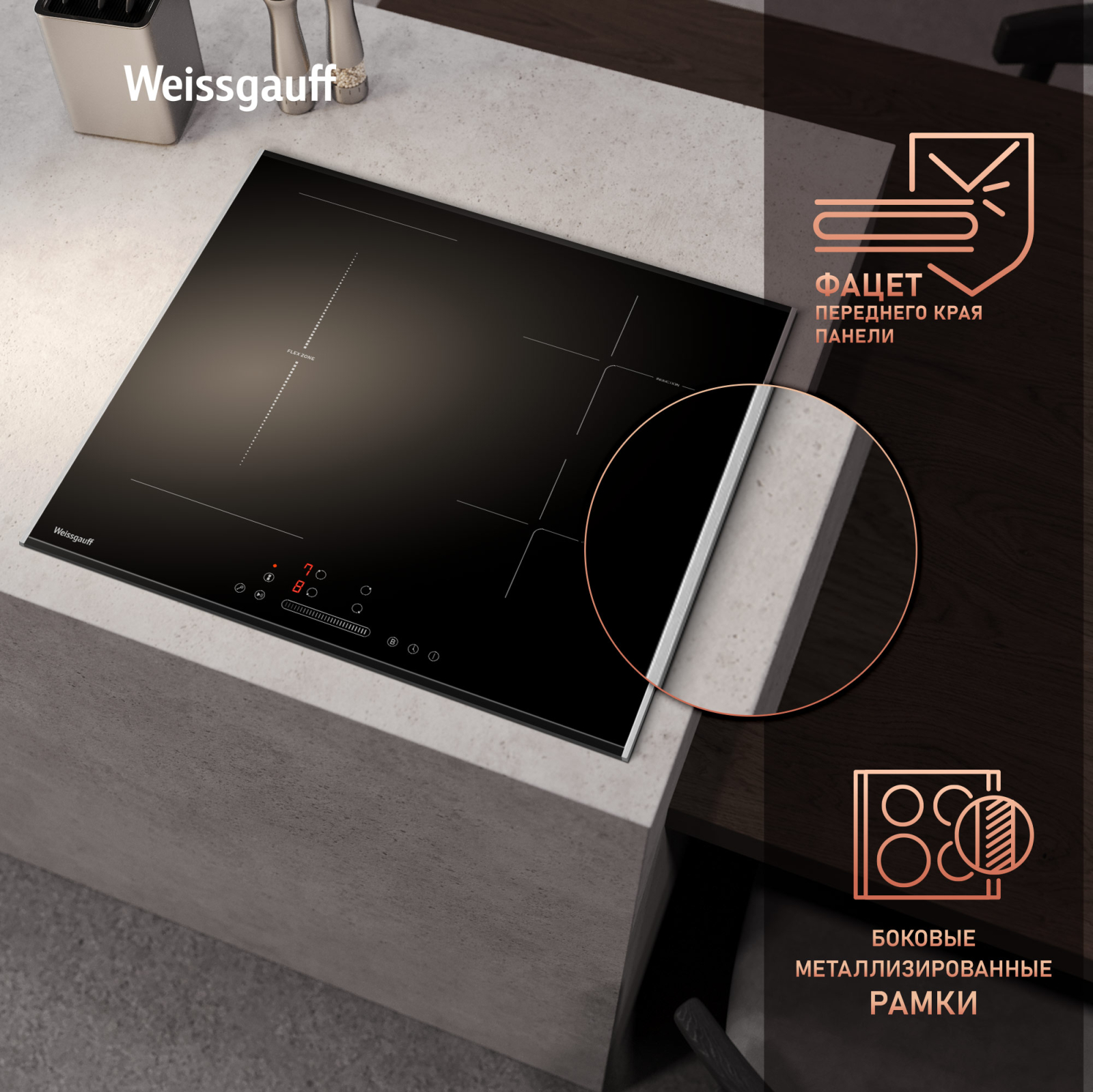 Варочная панель, оснащённая технологией непрерывного нагрева, свободной зоной Flex Zone, а также двумя независимыми конфорками и специальным круговым слайдером One Touch - это наиболее передовая из всех индукционных панелей Weissgauff, являющаяся поистине вершиной немецкого качества и технологий