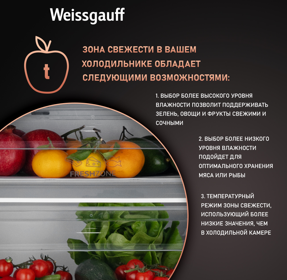 Cупер тихий встраиваемый холодильник от Weissgauff с уровнем шума 35 дБ, обладающий инверторным двигателем, объемом 275 литров с полной системой размораживания NoFrost для холодильной и морозильной камеры с уникальной технологией "Умная зона"Convert", которая позволяет максимально эффективно использовать пространство холодильника. Пользователь может одним касанием настроить температуру, чтобы создать оптимальные условия для разного типа продуктов - это воплощение передовых инженерных решений Weissgauff по действительно доступной цене!