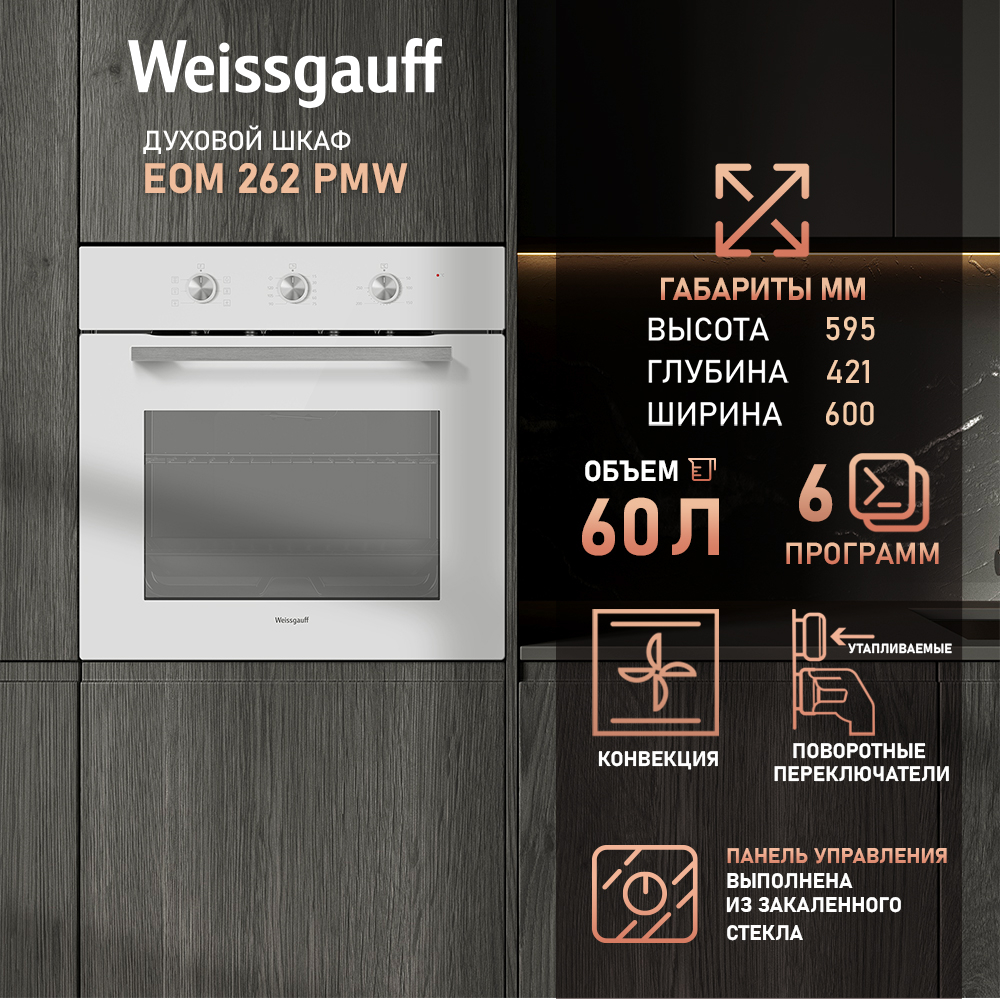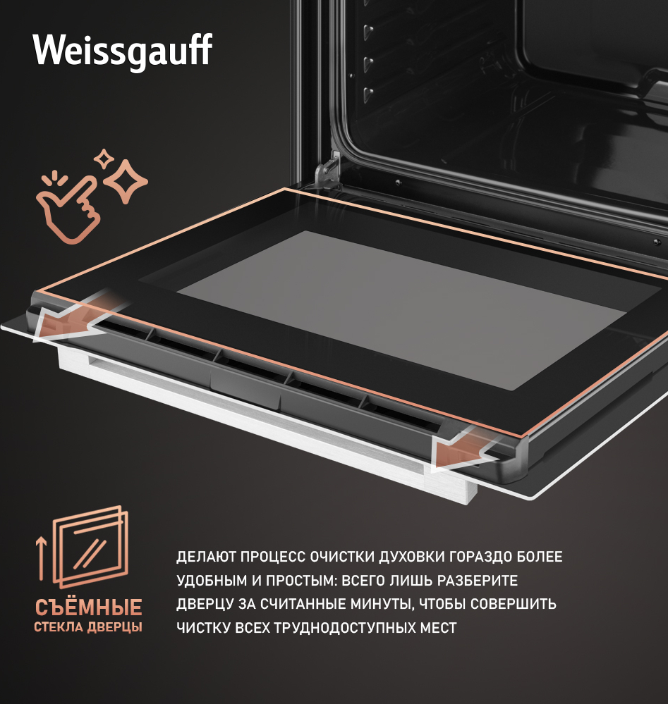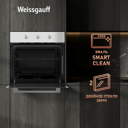 Дизайн в Белом цвете - станет финальным штрихом в совершенстве облика этой модели. Каждый раз, взаимодействуя с духовым шкафом от Weissgauff, вы будете в полной мере ощущать, как он способен нагревать не только еду, но и согревать душу, став настоящим сердцем вашего уютного домашнего очага