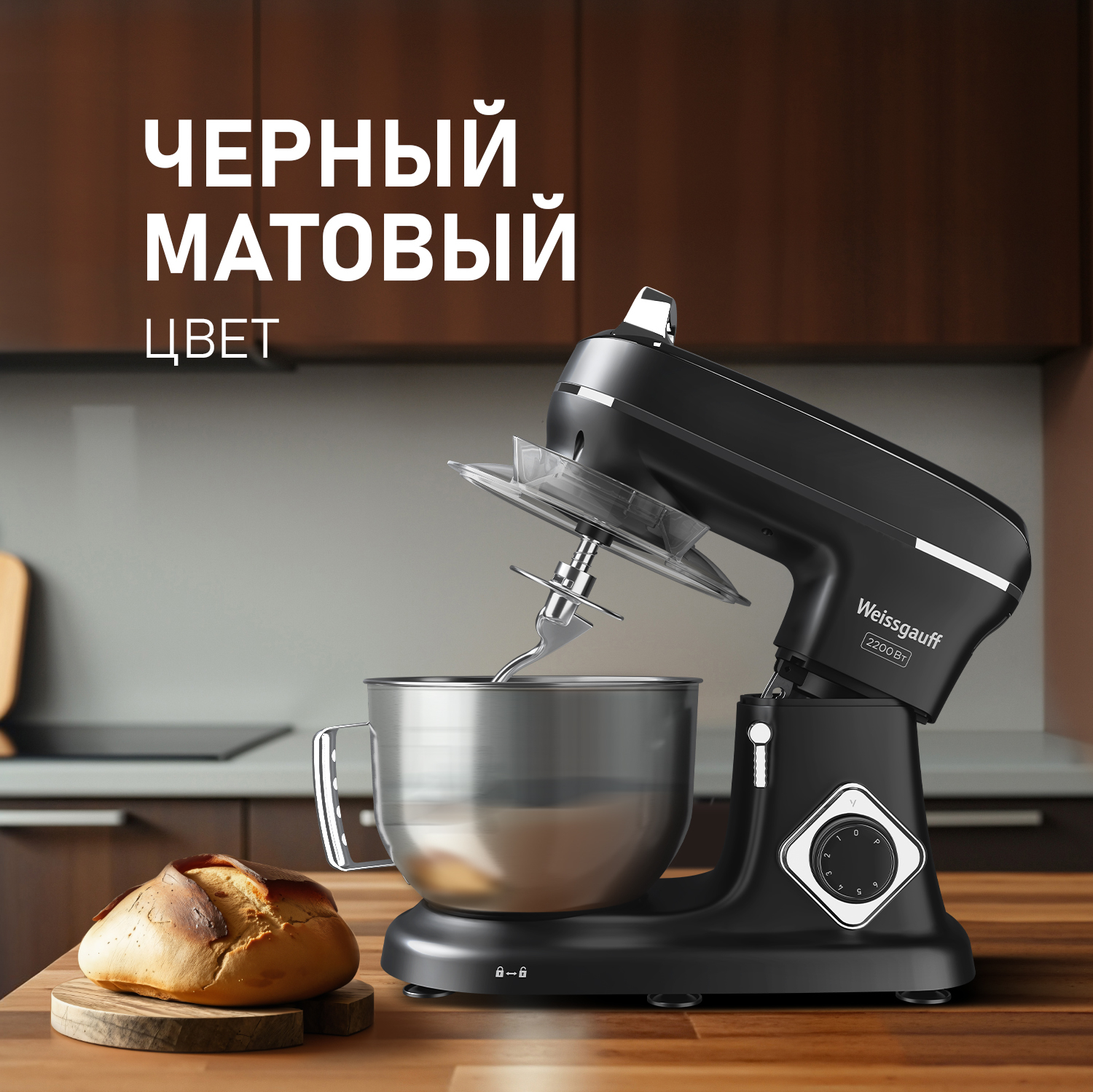 Электрический планетарный миксер от Weissgauff в дизайне чёрного цвета, обладающий впечатляющей мощностью 2200 Вт, оснащенный набором насадок для теста и для смешивания, венчиком для взбивания, а также удобной чашей с ручкой и защитной крышкой - это незаменимый помощник на вашей кухне, который поможет вам воплотить в реальность самые смелые кулинарные идеи!