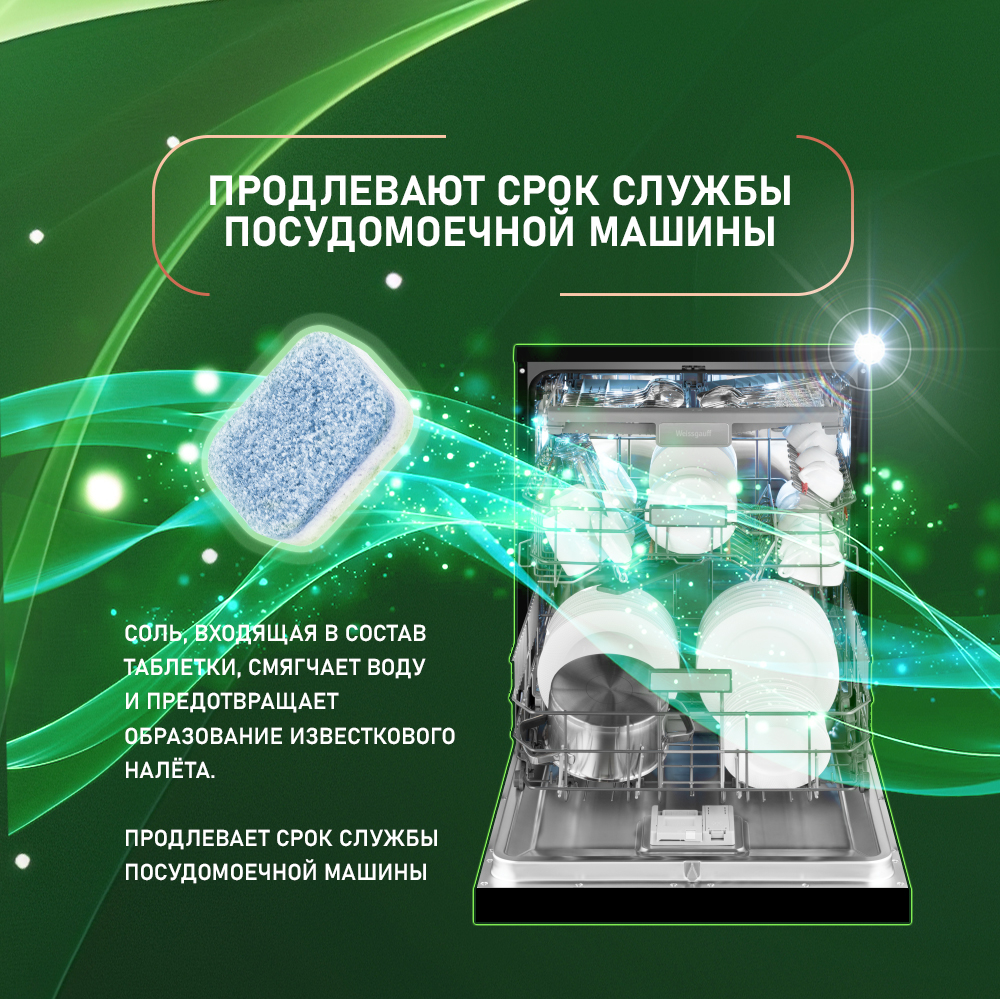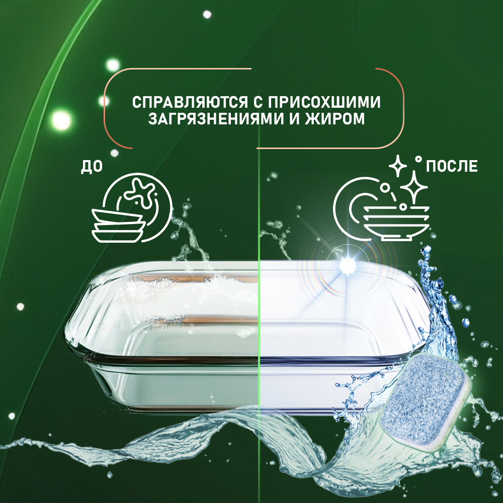| Особенности: | All in One, можно использовать для септиков, безопасны для детской посуды, гипоаллергенны, нет агрессивных средств в составе, высокоэффективная очистка посуды в посудомоечной машине |