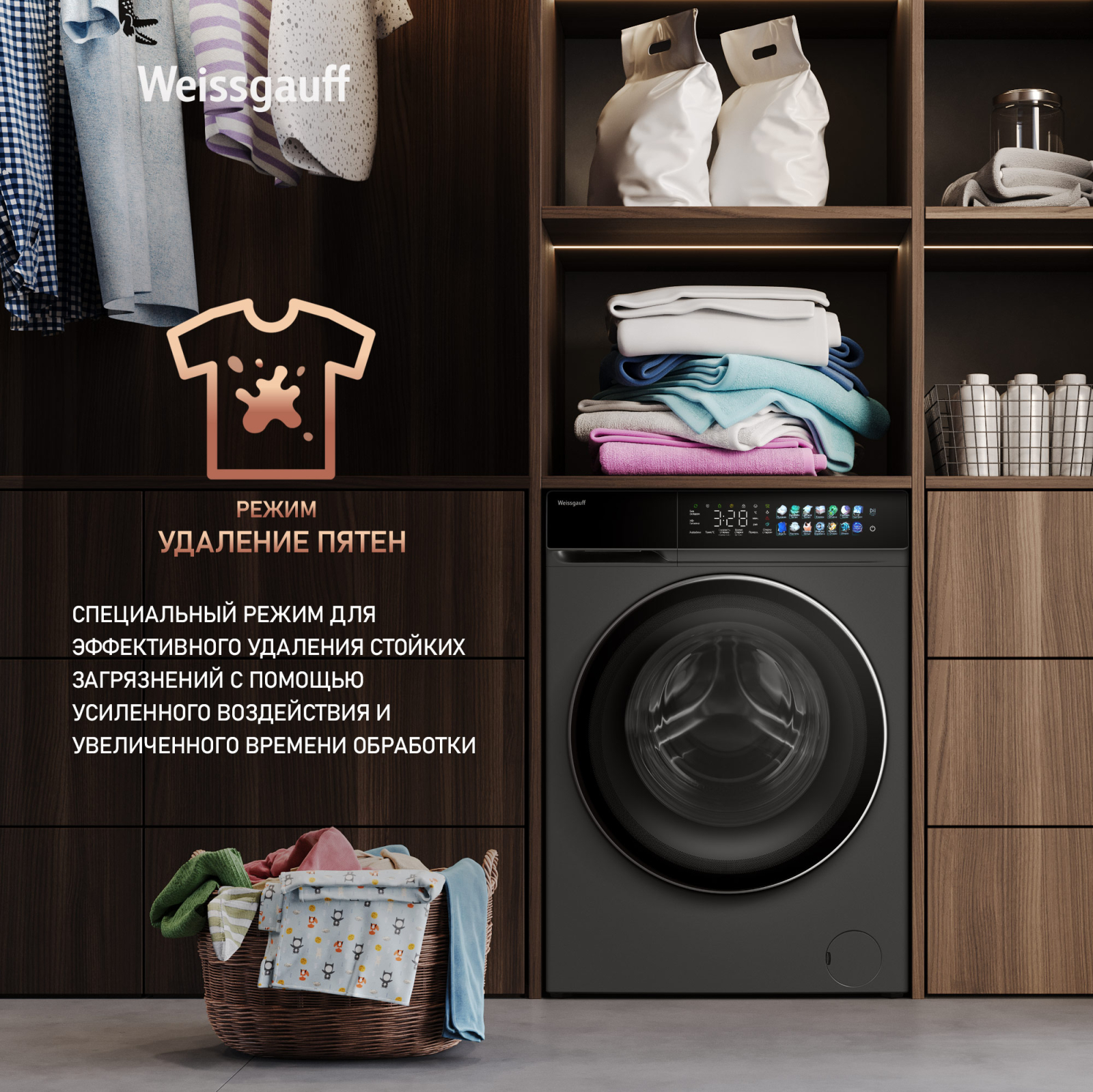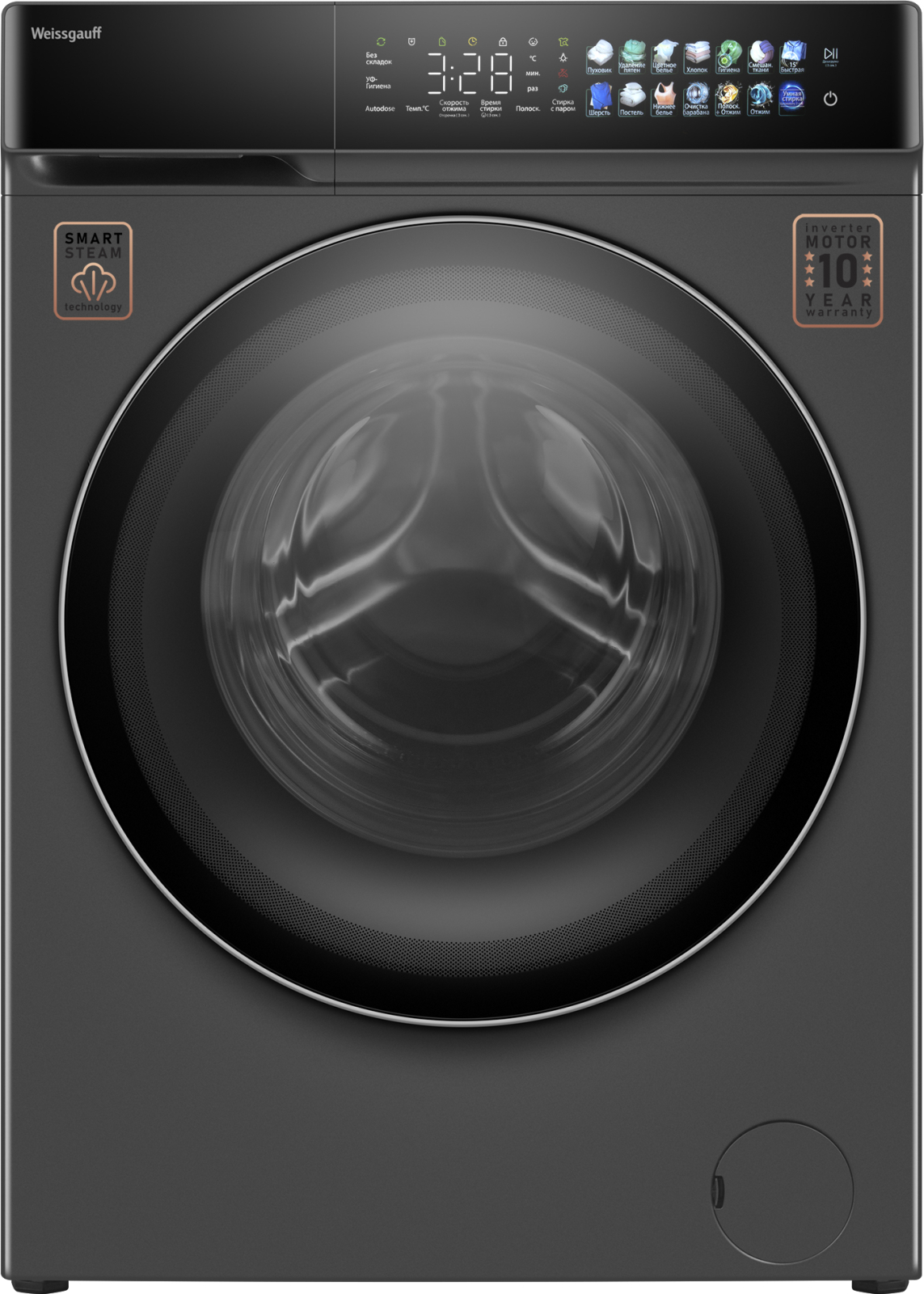 Отдельностоящая стиральная машина Weissgauff, инверторным двигателем и функцией пара, имеющая показатели загрузки до 11 кг белья и скорости отжима до 1400 оборотов в минуту, а также цветной дисплей SMART SCREEN и функцию автодозирования - это одна из наиболее передовых моделей Weissgauff в категории стиральных машин!