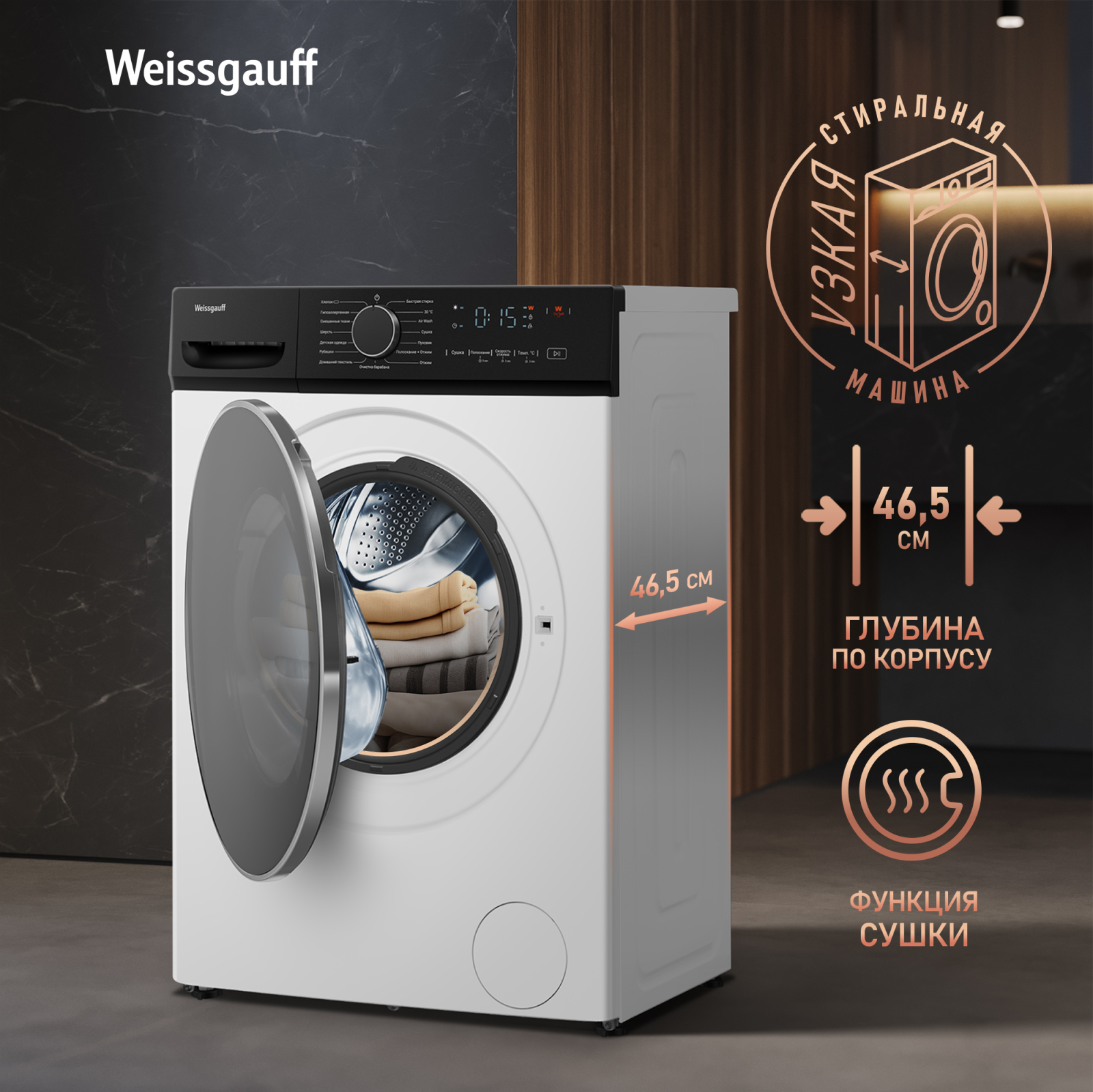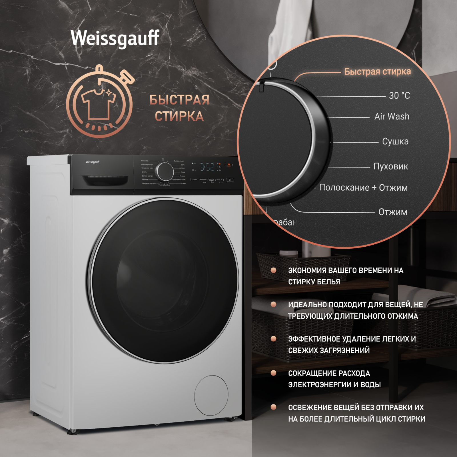 Отдельностоящая стиральная машина с функцией сушки Weissgauf, оснащенная инверторным двигателем, работающим по особой технологии BLDC, имеет фантастический показатель загрузки до 8 килограммов белья и невероятную скорость отжима до 1400 оборотов в минуту - это гарантия непревзойденной эффективности и высокого результата при каждой стирке вашего белья.