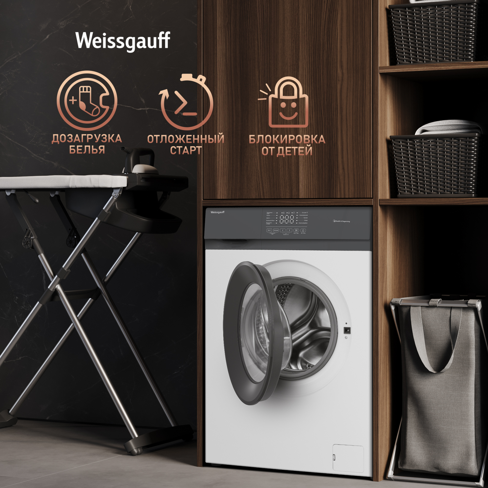 Отдельностоящая стиральная машина Weissgauff, оснащенная сенсорным блоком управления и гипоаллергенной функцией, имеющая показатели загрузки до 6 кг белья и скорости отжима до 800 оборотов в минуту - это настоящее качество по разумной цене!.