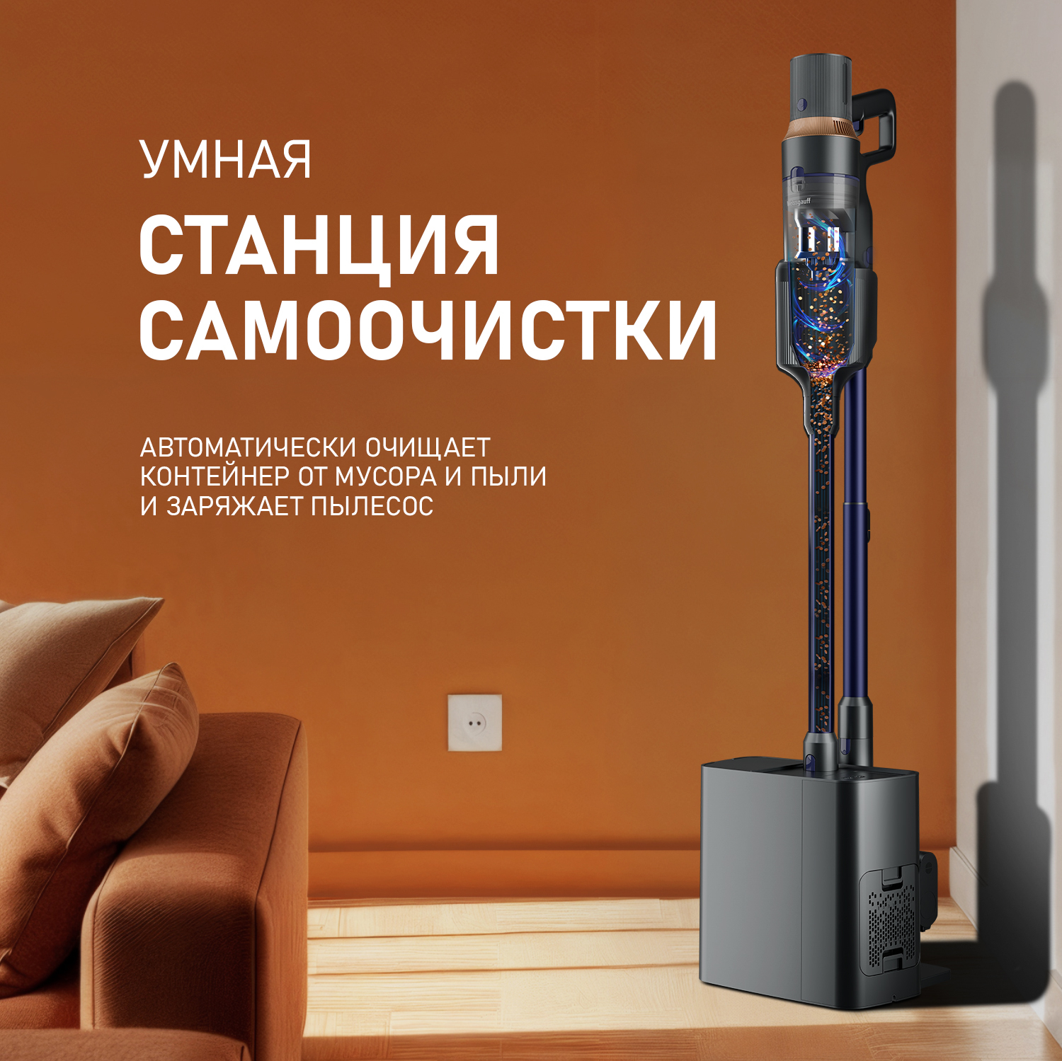 Вертикальный беспроводной самоочищающийся пылесос со станцией самоочистки