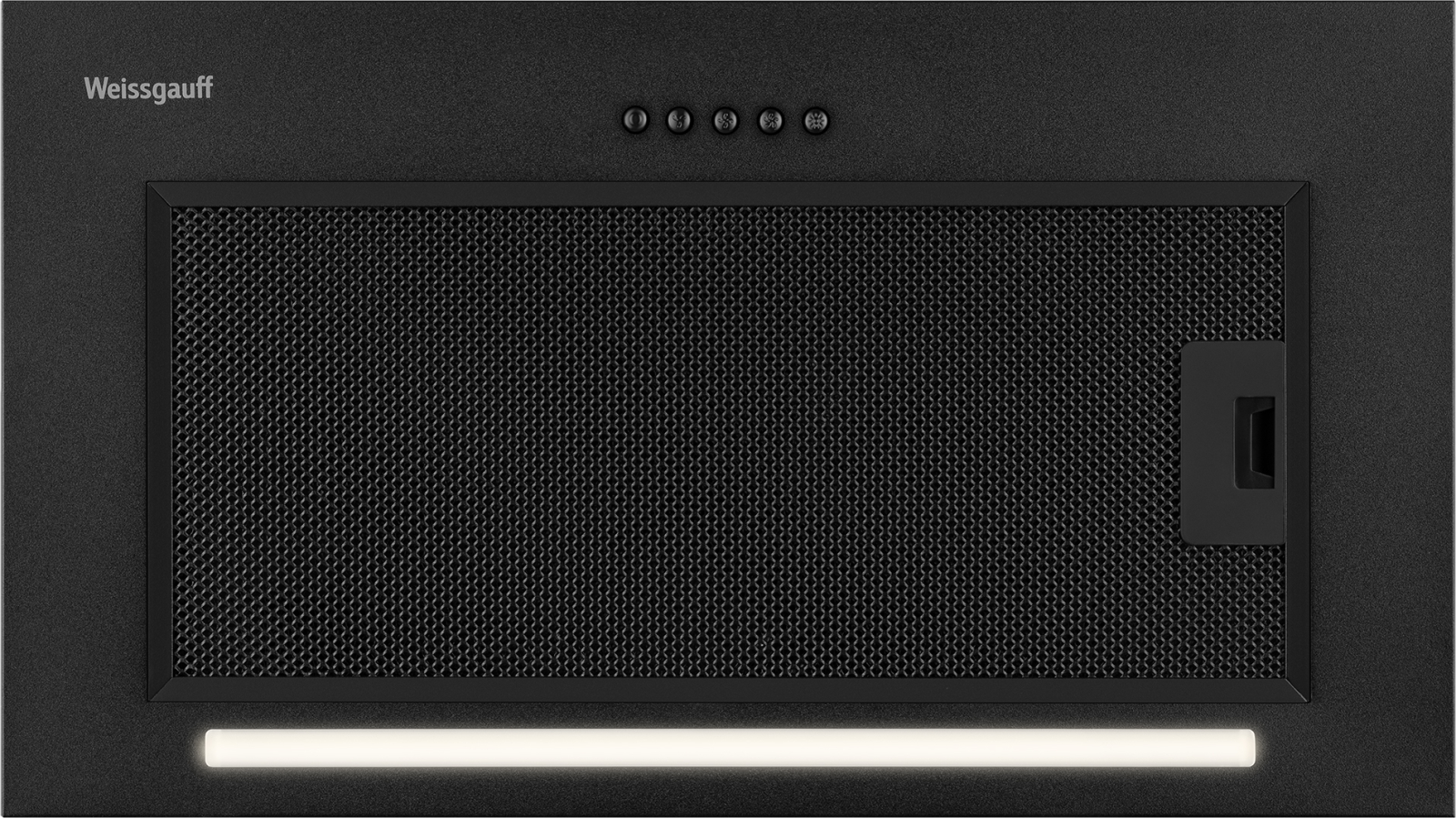 Полностью встраиваемая вытяжка от Weissgauff, воплощающая в себе безупречный дизайн и высокую эффективность, оснащена интуитивно понятным кнопочным управлением и выполнена в дизайне врезного блока с панелью стильного черного цвета!