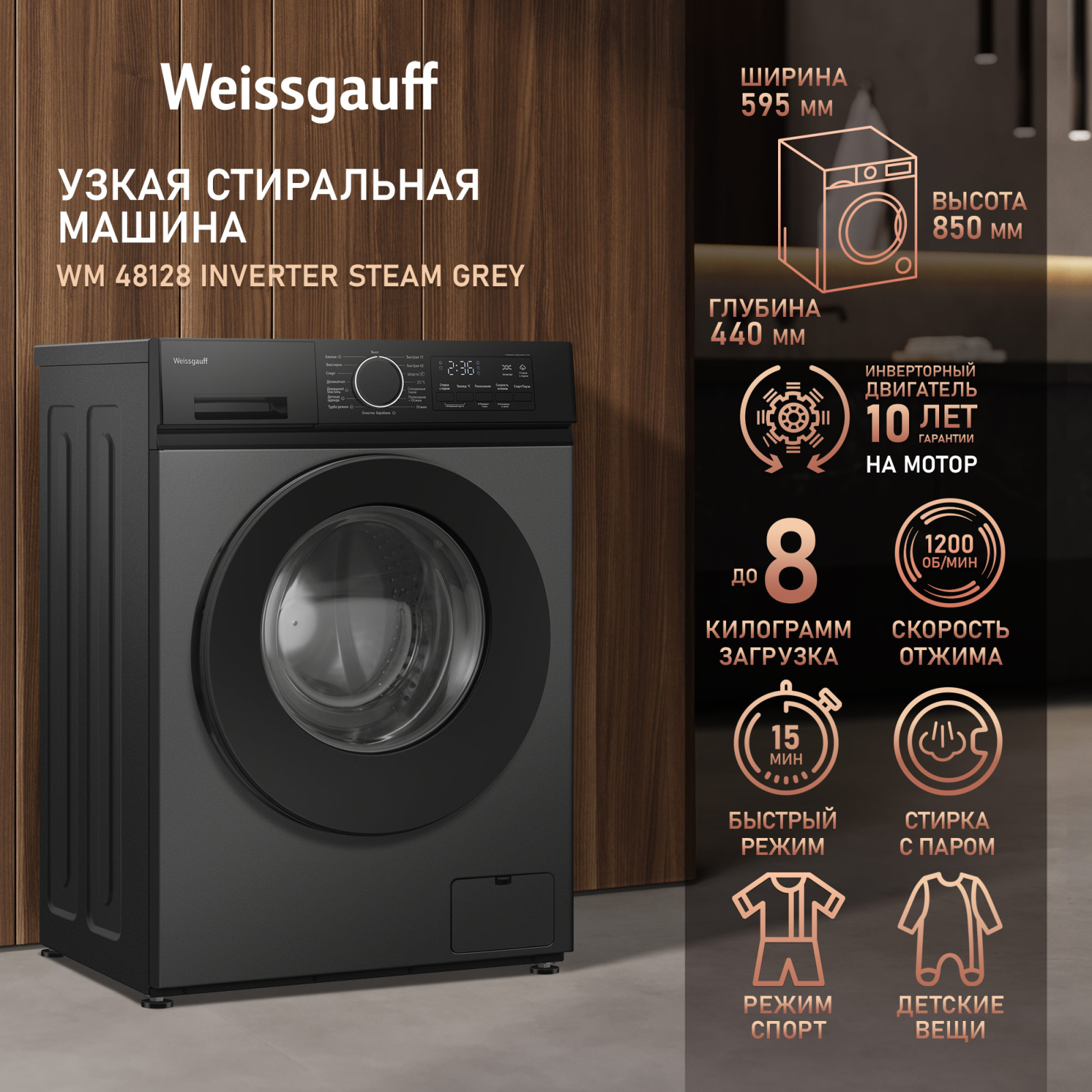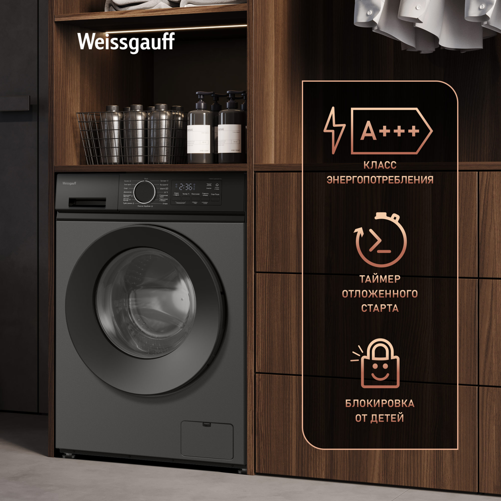 Отдельностоящая стиральная машина Weissgauff, имеющая достойные показатели загрузки до 8 кг белья и скорости отжима до 1200 оборотов в минуту, а также большой цифровой дисплей с наглядной индикацией для выбора специальных возможностей и программирования установок - это настоящее сочетание отличного качества и разумной цены!