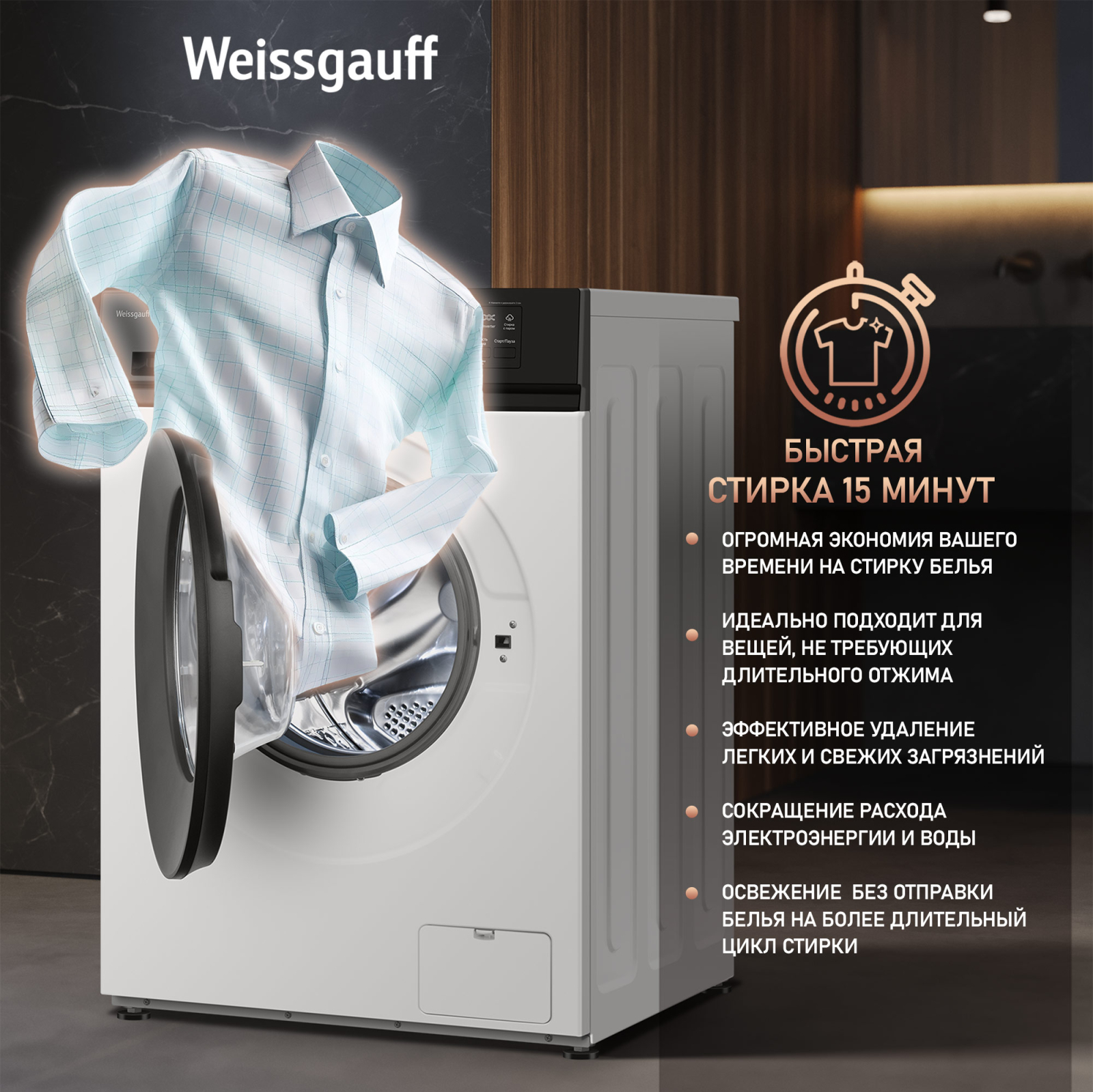 Режим "Быстрая стирка" 15 минут - это по-настоящему фантастическая программа для тех, кто умеет ценить своё время!