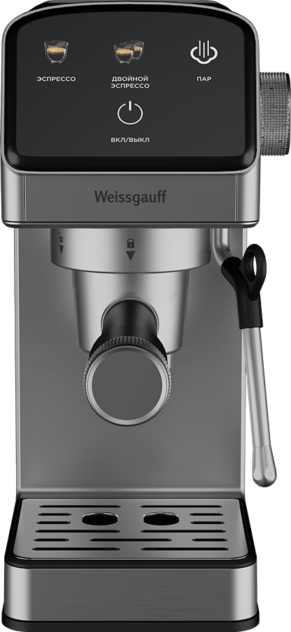 Кофеварка от компании Weissgauff, выполненная в серебристом цвете и оснащенная цветным сенсорным дисплеем, а также встроенным капучинатором, позволяет заваривать кофе с использованием чалд, капсул Nespresso и молотого кофе. Устройство предоставляет две предварительно запрограммированные функции для приготовления ароматного кофе высокого качества на вашей кухне.