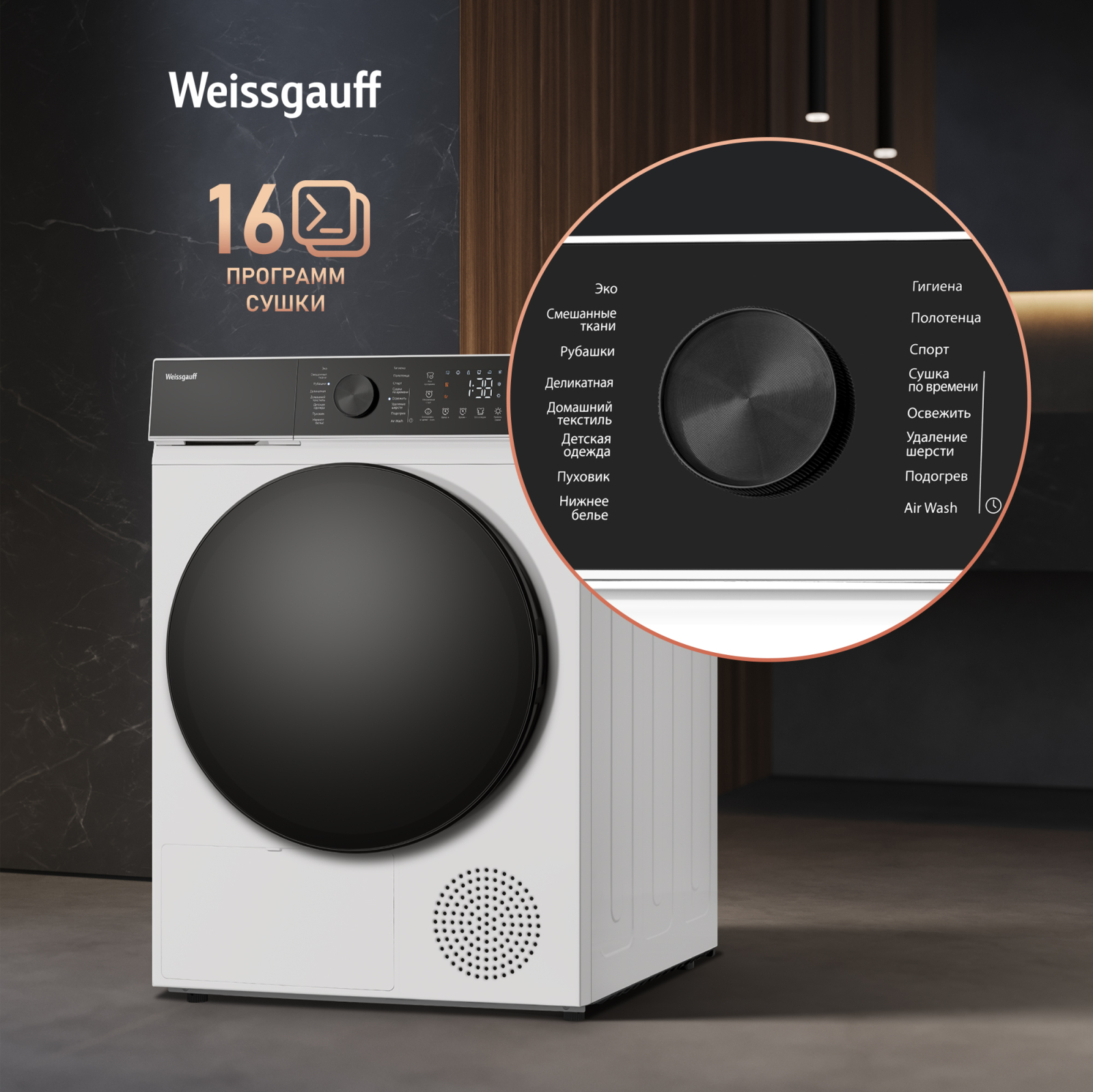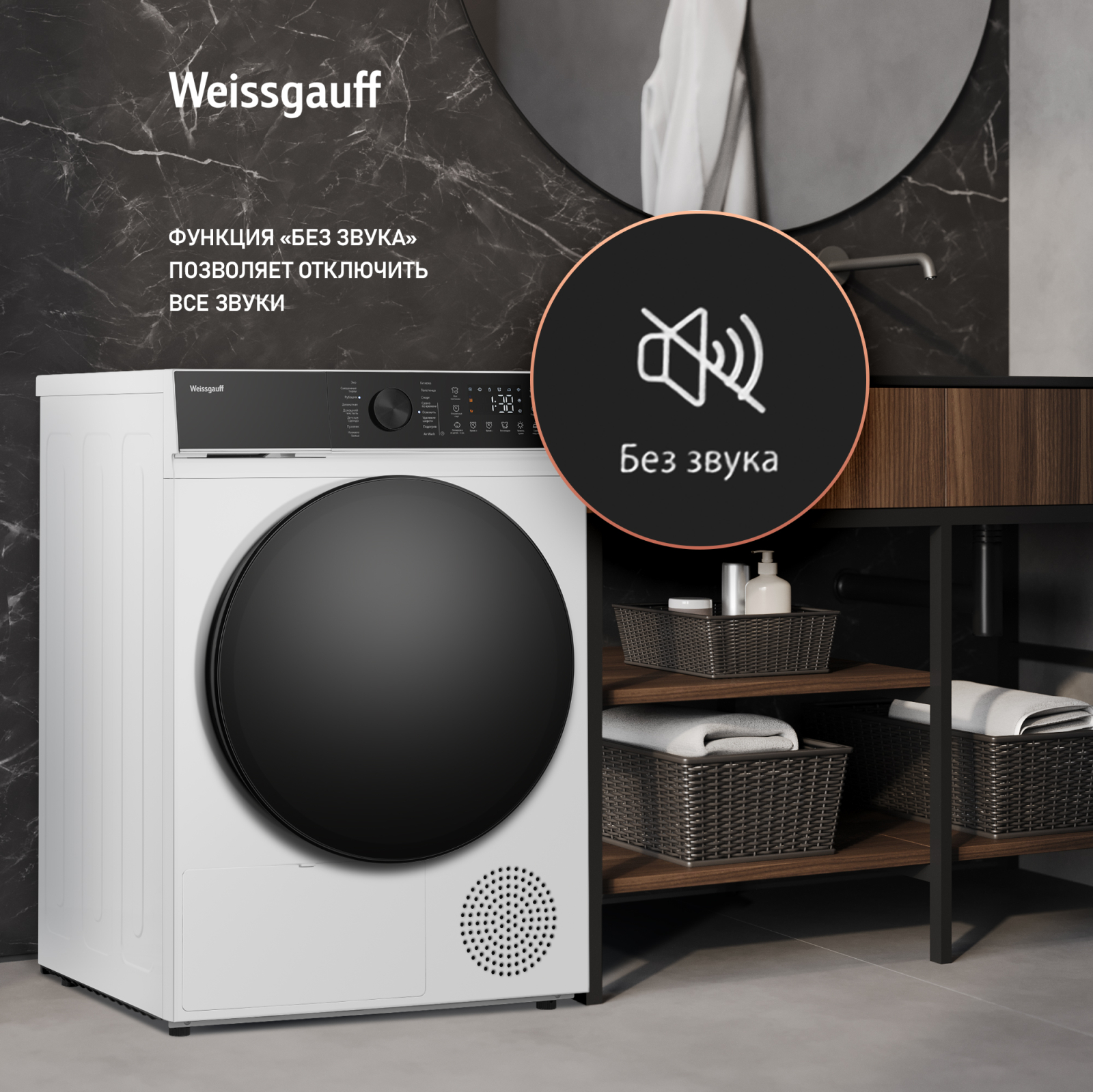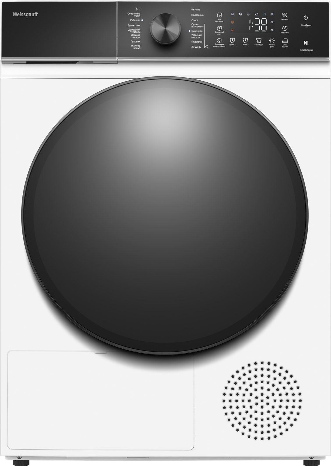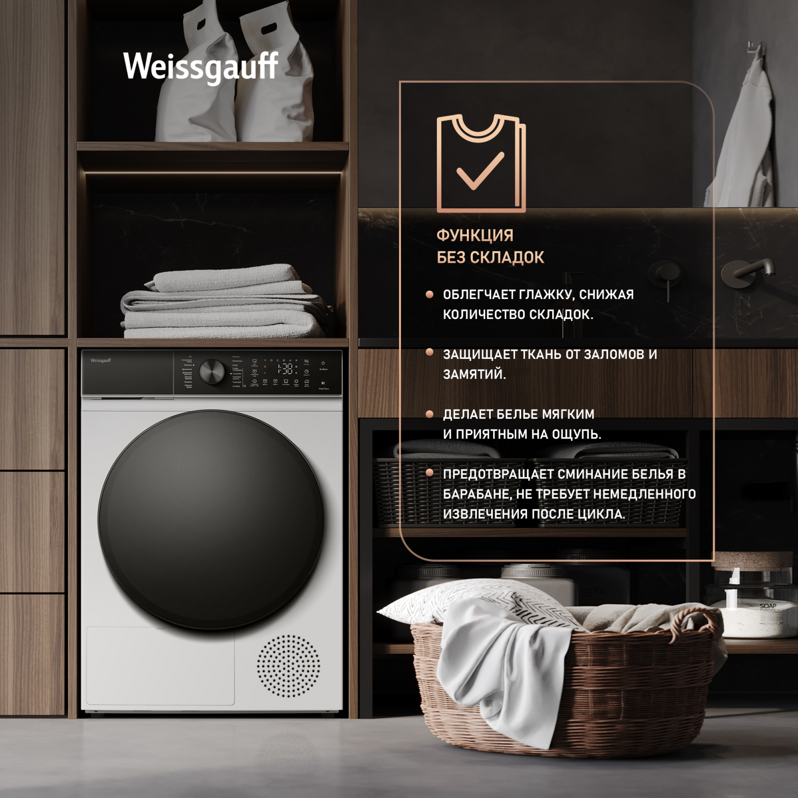 Отдельностоящая сушильная машина Weissgauff, оснащенная тепловой помпой, имеет фантастический показатель загрузки до 10 килограммов белья, что делает данную модель реальным воплощением основного принципа Weissgauff: "Качество, доступное каждому"!