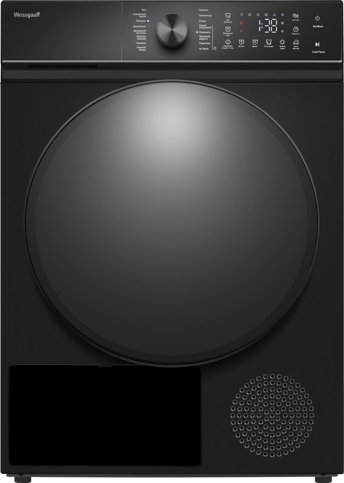 Отдельностоящая сушильная машина Weissgauff, оснащенная тепловой помпой, имеет фантастический показатель загрузки до 10 килограммов белья, что делает данную модель реальным воплощением основного принципа Weissgauff: "Качество, доступное каждому"!