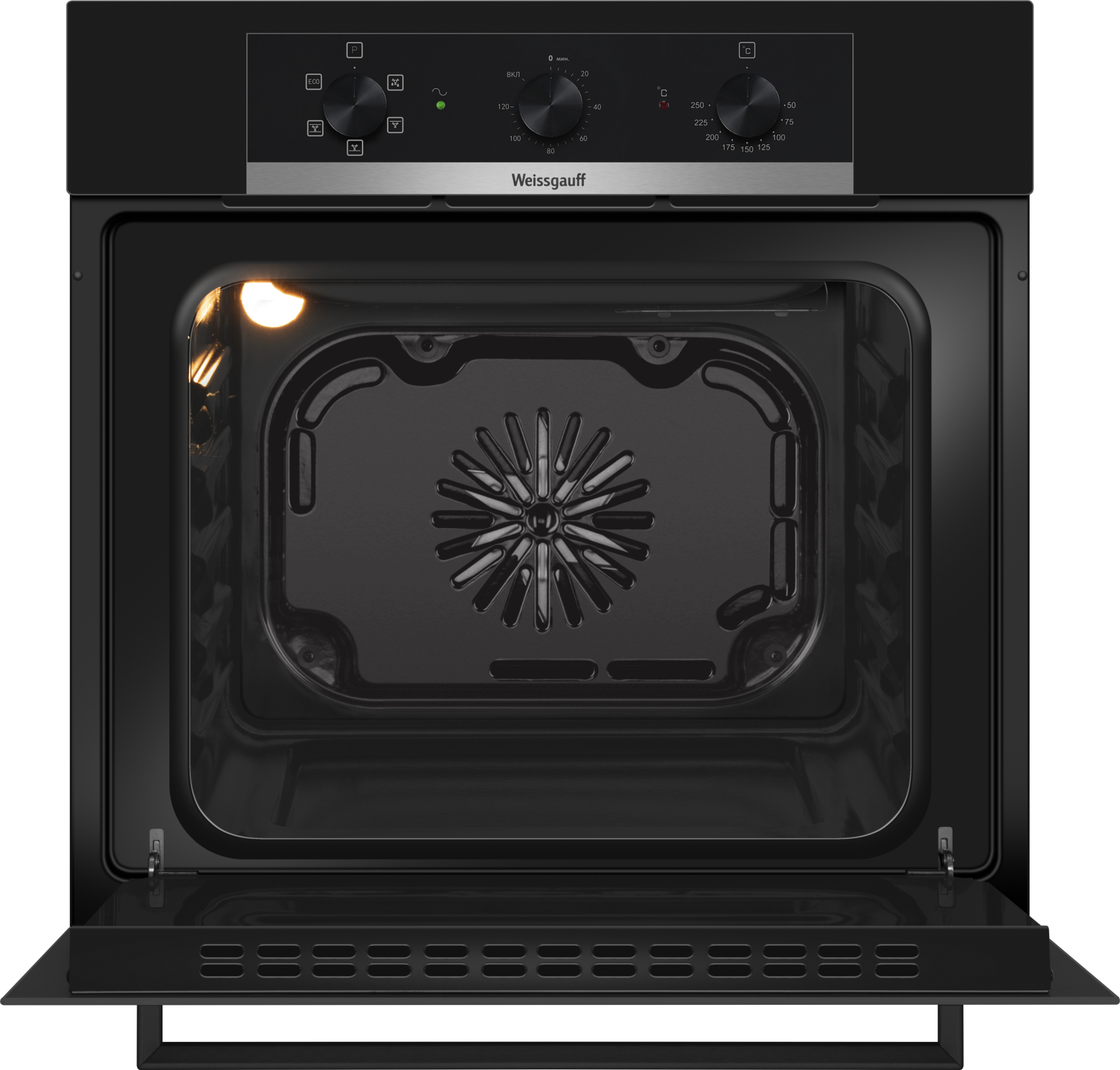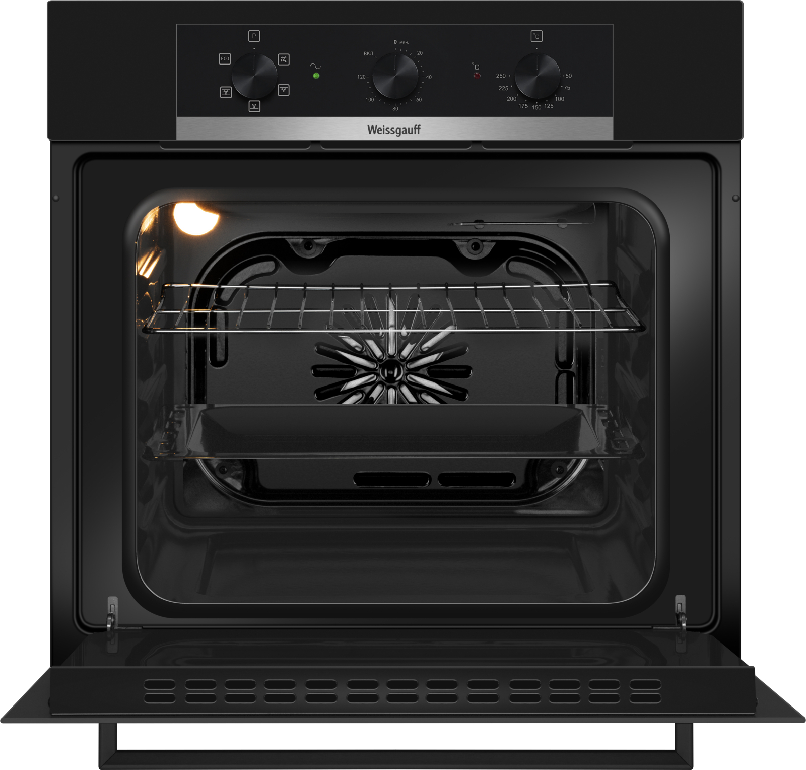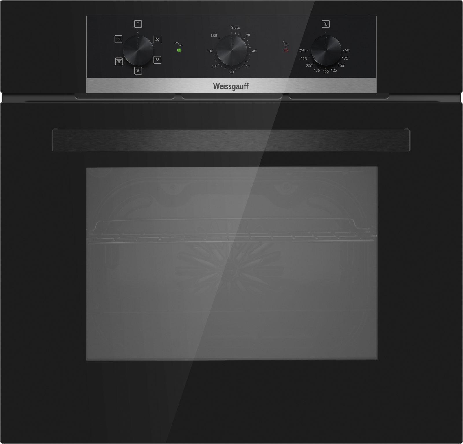 Электрический духовой шкаф от Weissgauff, выполненный в чёрном цвете, оснащённый механическими поворотными рукоятками Soft Switch, тройным остеклением дверцы, таймером и 5 режимами, буквально олицетворяет собой уверенность в надёжном и функциональном оснащении вашей кухни!