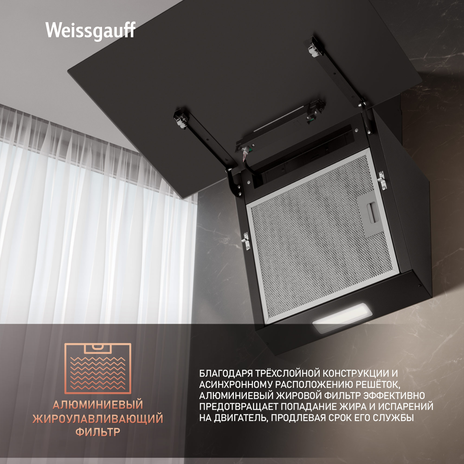 Эффективная работа в помещении площадью до 27 м2 - это гарантия того, что после установки вытяжки Weissgauff, обновление воздуха будет соответствовать всем требуемым нормам, сохраняя ваше здоровье на долгие годы!