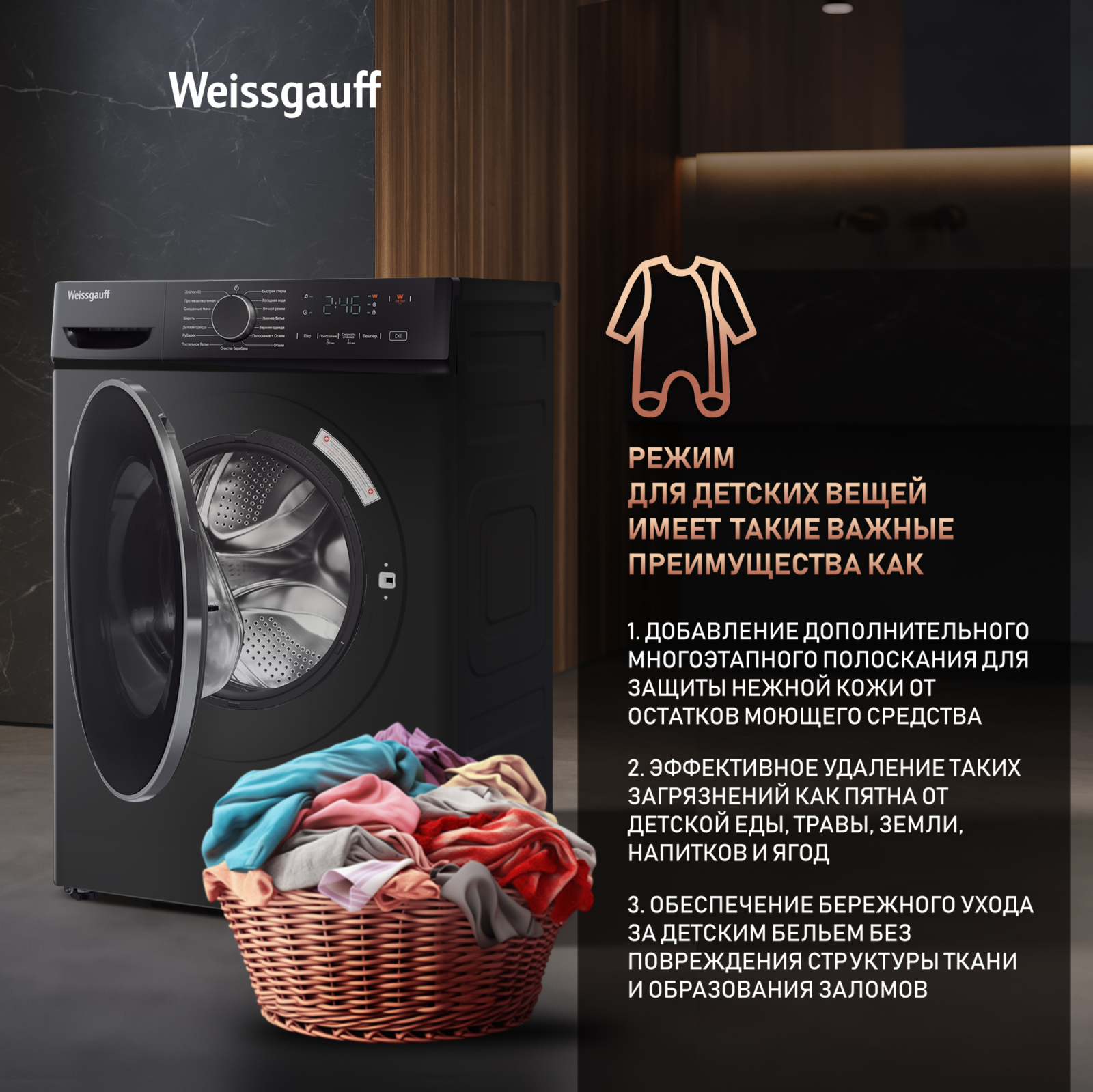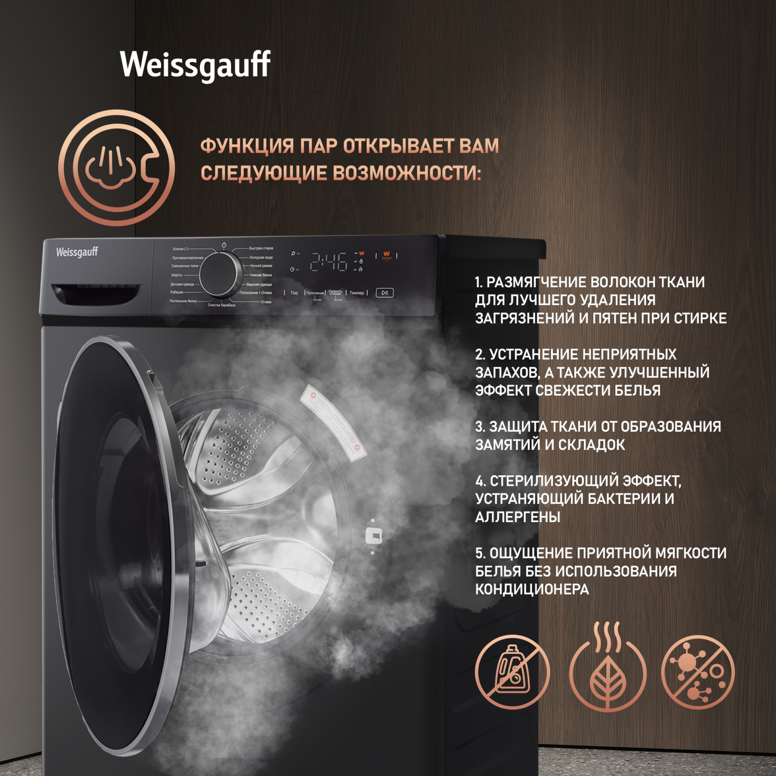 Отдельностоящая стиральная машина Weissgauff, оснащенная инверторным двигателем и функцией пара, имеющая показатели загрузки до 7 кг белья и скорости отжима до 1200 оборотов в минуту - это настоящее качество по разумной цене!