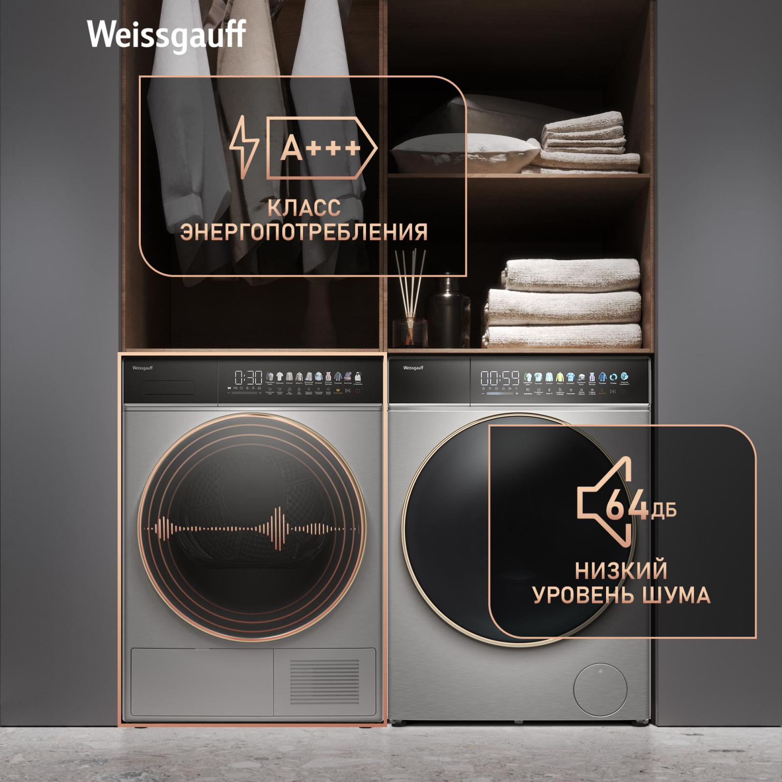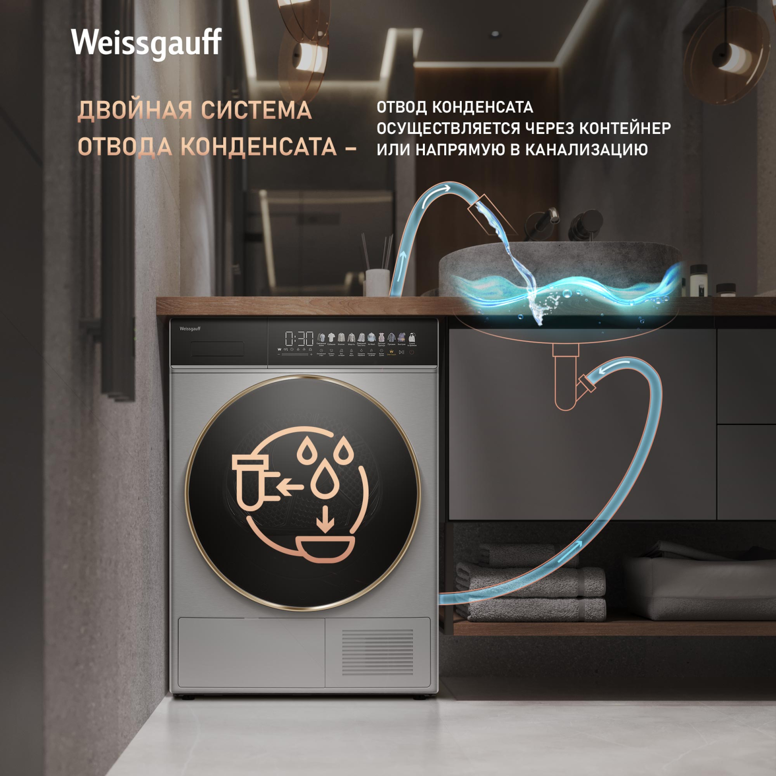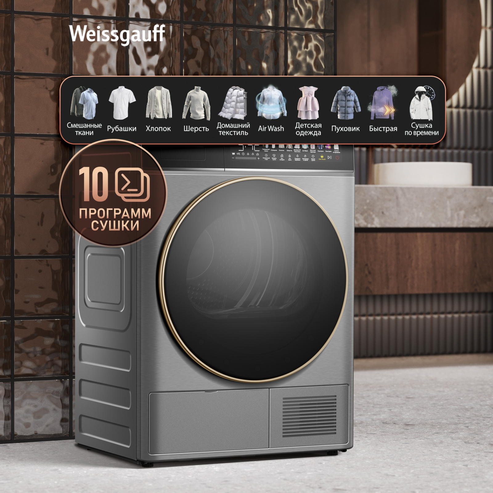 FAMILY- комплект! Данная модель идеальна для установки в колонну со стиральной машиной Weissgauff WM 58411 Direct Drive Inverter Premium Steam Steel, образуя цельный и гармоничный комплект бытовой техники, выполненный в едином дизайне! Обратите внимание, что для установки в колонну потребуется дополнительно приобрести соединительный элемент Weissgauff WSK 50400 Steel