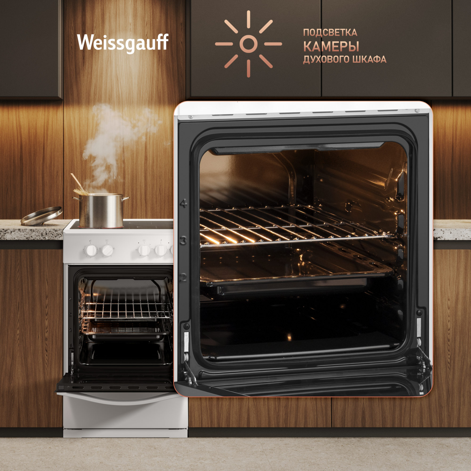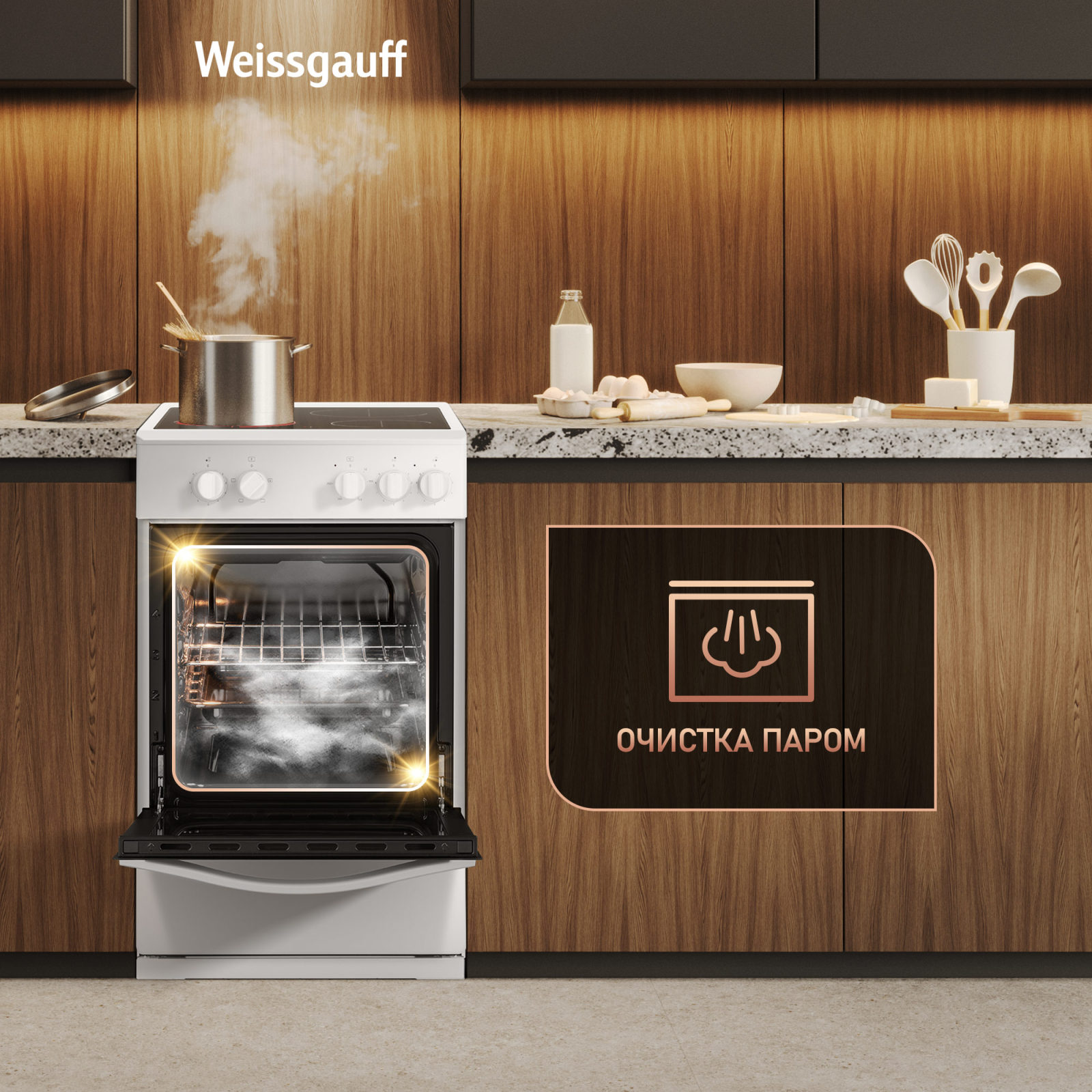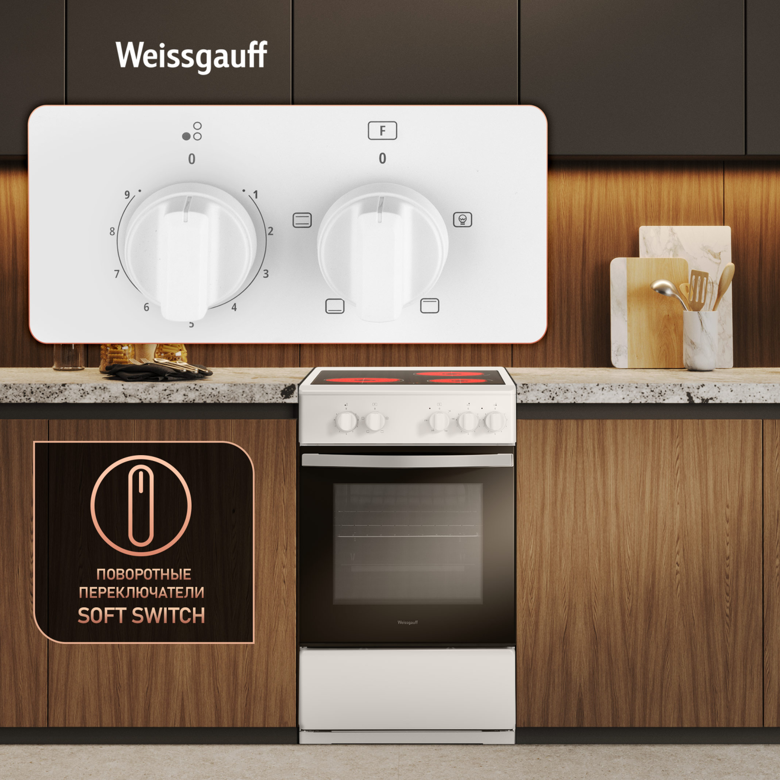 Дизайн, выполненный в белом цвете, станет финальным штрихом в совершенстве великолепного облика этой модели. Каждый раз, взаимодействуя с вашей плитой от Weissgauff, вы будете чувствовать, что это не только функциональное устройство, но и настоящее украшение вашей кухни!