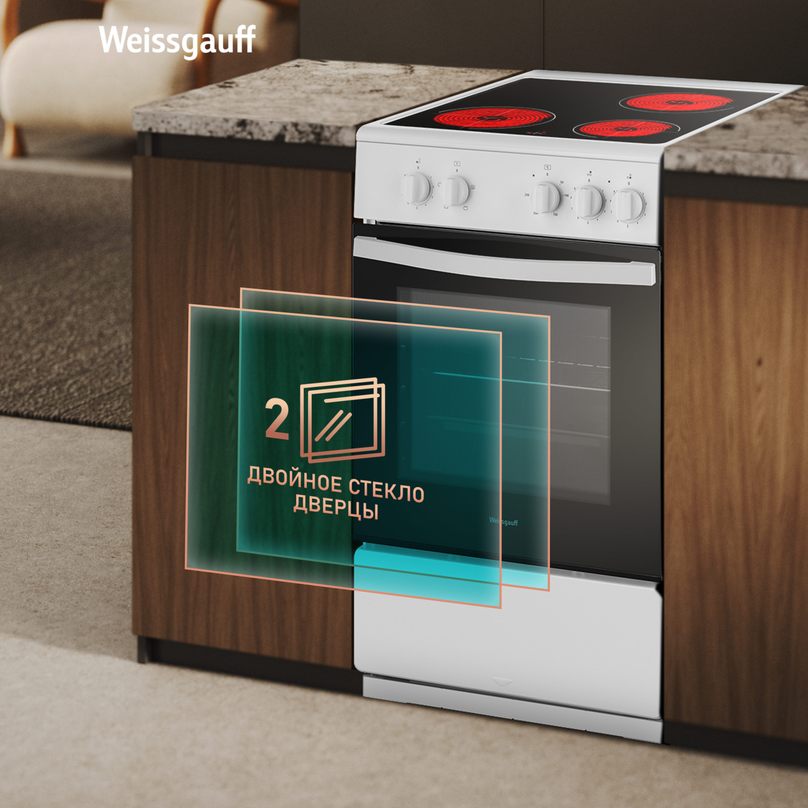 Двойное стекло дверцы, воплощающее в себе весь подход к безопасности и термозащите, который Weissgauff реализовали в данной модели. Такое стекло обеспечивает вам значительно большую степень защиты при случайных прикосновениях к нагревающейся дверце плиты, чем в моделях, не оснащенных технологией многослойного стекла. Для нас в Weissgauff важно, чтобы работа с бытовой техникой была не только приятной, но и безопасной!