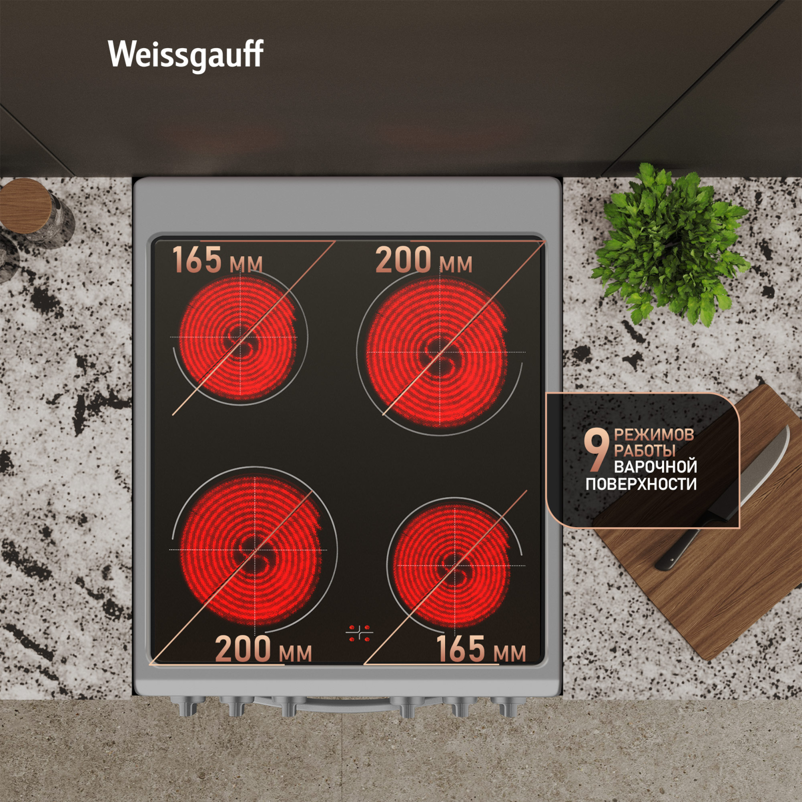 Дизайн, выполненный в серебристом цвете, станет финальным штрихом в совершенстве великолепного облика этой модели. Каждый раз, взаимодействуя с вашей плитой от Weissgauff, вы будете чувствовать, что это не только функциональное устройство, но и настоящее украшение вашей кухни!