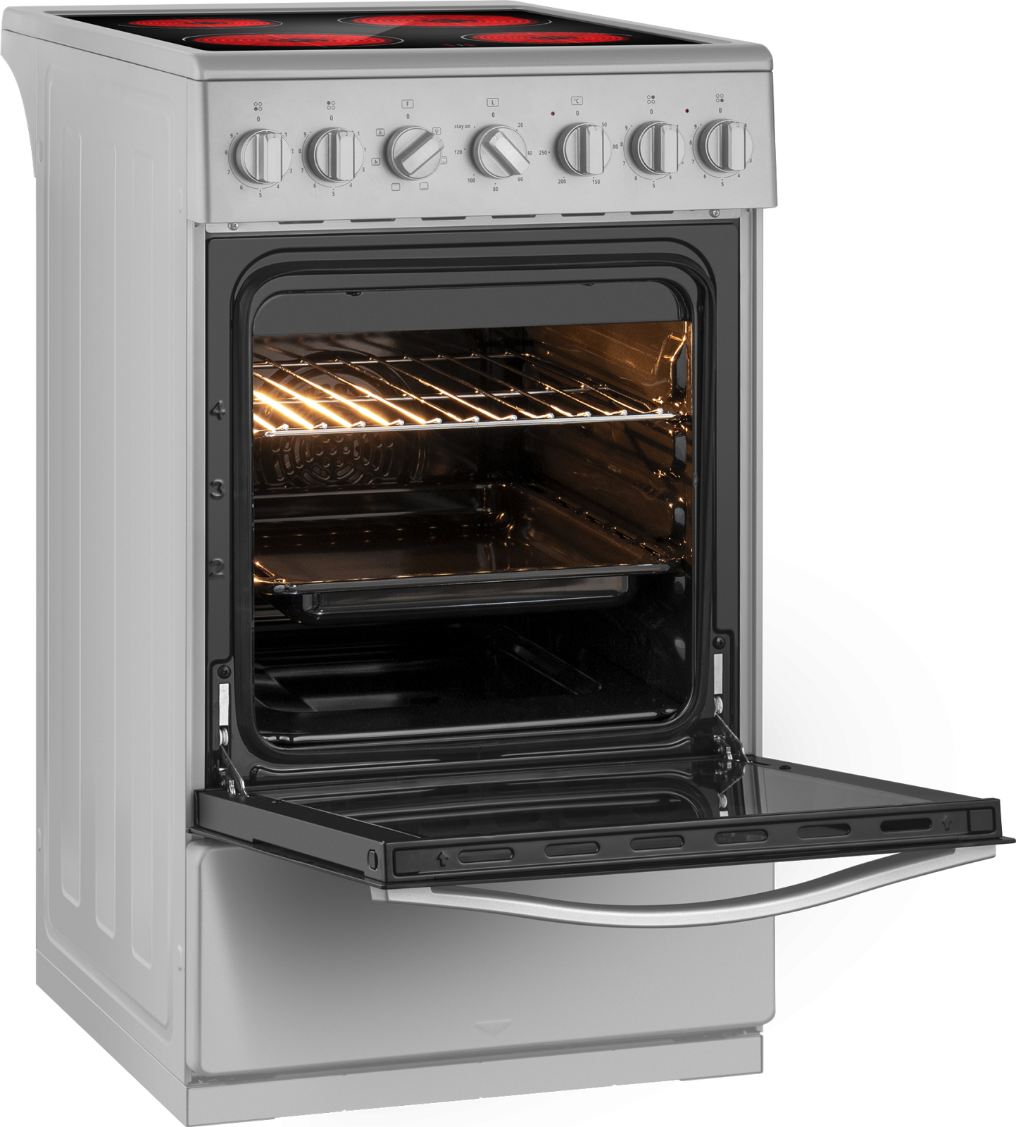Электрическая отдельностоящая плита Weissgauff шириной всего 50 см, оснащенная духовкой с впечатляющим объемом 50 литров, а также стеклокерамической панелью с 4 Hi-Light конфорками - это сочетание великолепной функциональности и практичности, воплощенное в бытовой технике, которая станет сердцем вашей кухни на долгие годы!