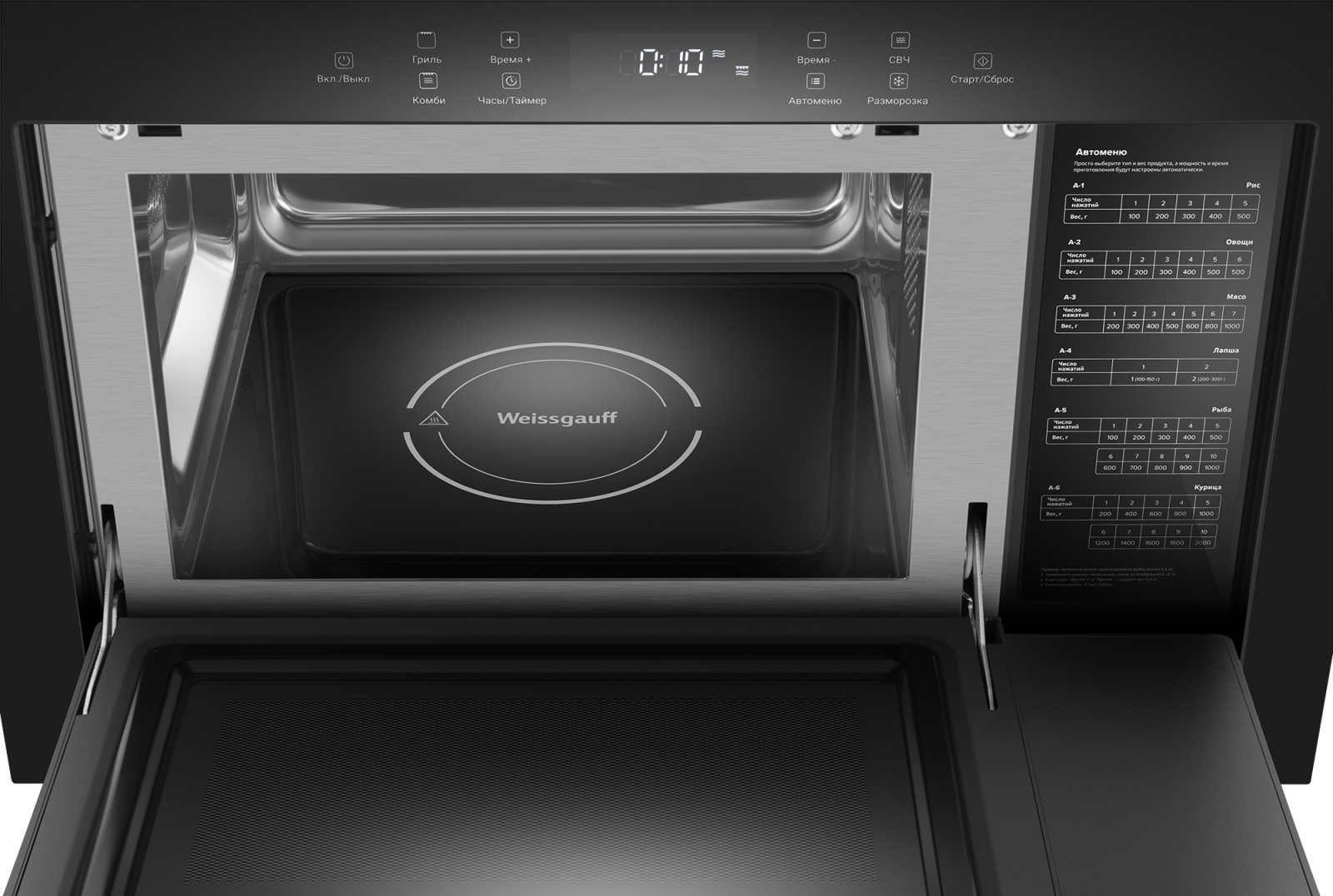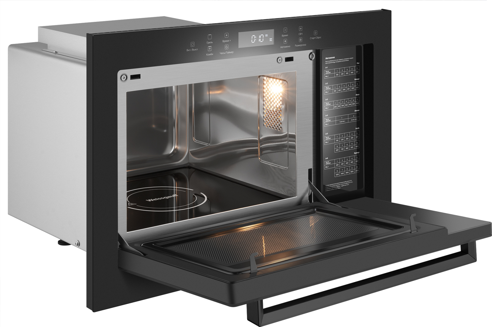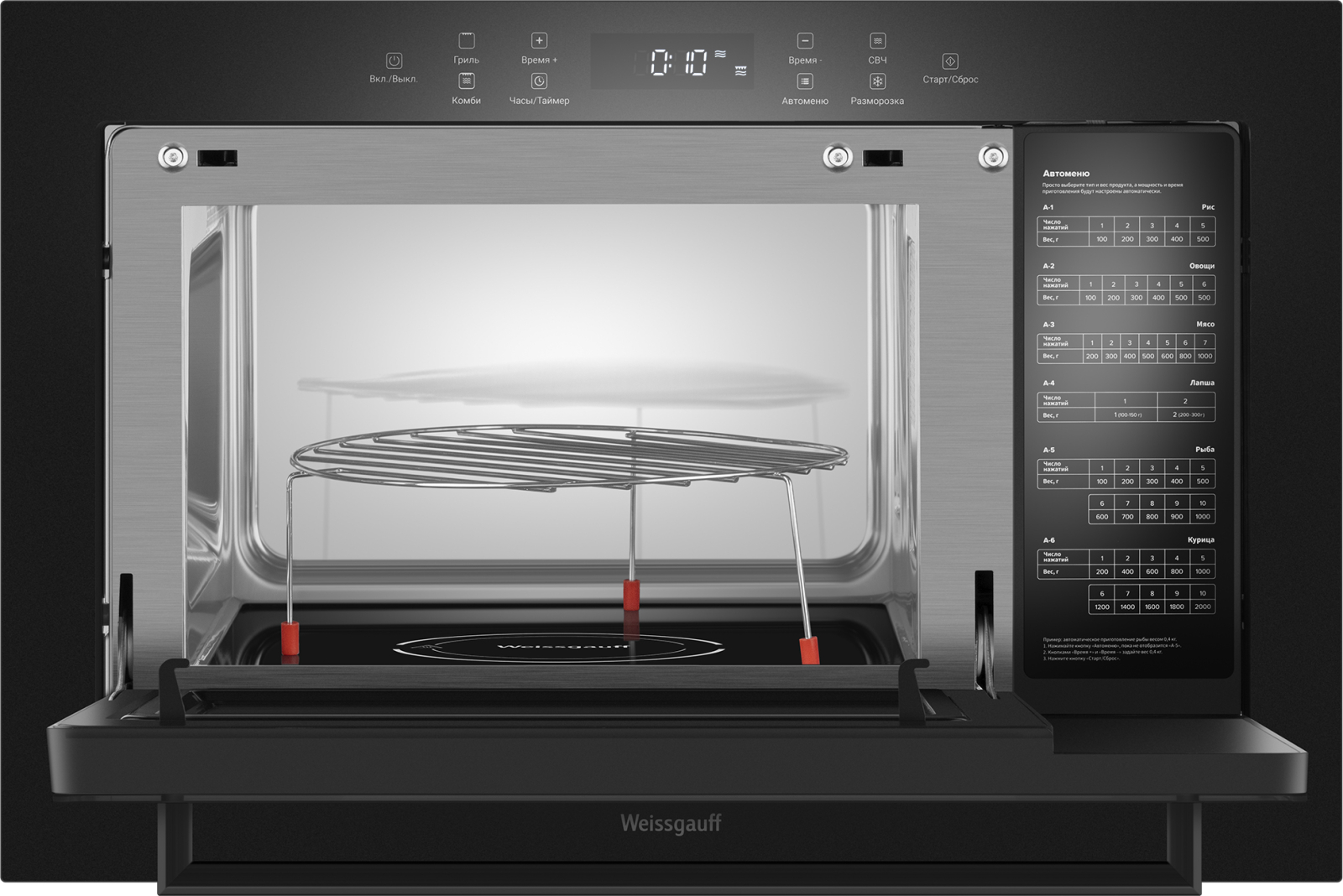 Встраиваемая микроволновая печь Weissgauff на 25 литров, выполненная в великолепном дизайне MATT EDITION, равномерно разогревает еду без поворотного стола, благодаря системе Spiegel и внутренней камере из нержавеющей стали облегчает процесс чистки, обеспечивает долговечность, устойчивость к царапинам и воздействию высоких температур, что обеспечивает лёгкость в уходе и долговечность.