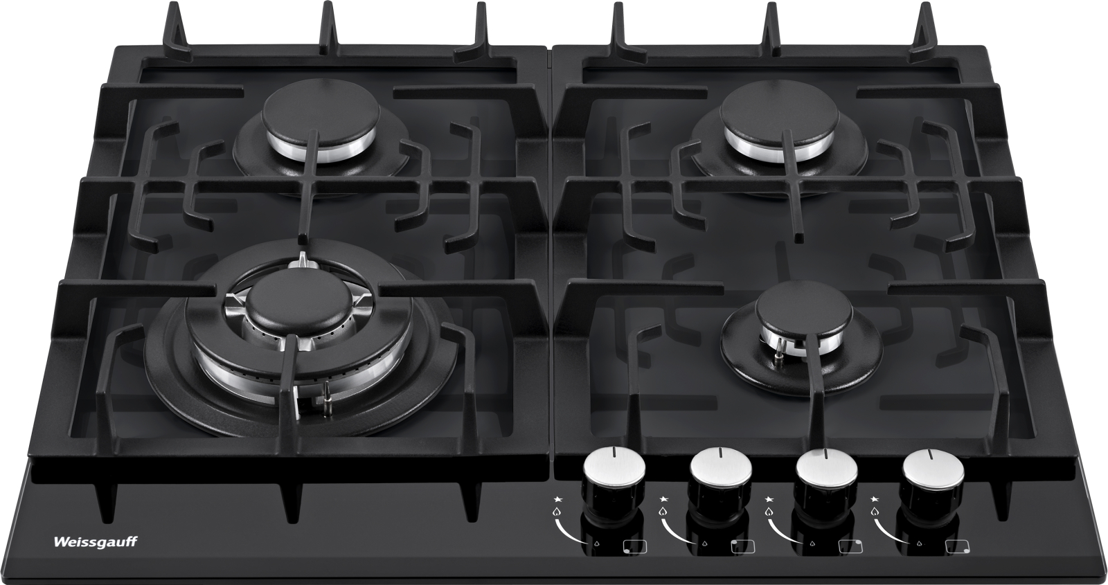 Газ-контроль каждой конфорки обеспечивает наивысшую безопасность: в случае, если пламя погасло, подача газа будет автоматически прекращена!